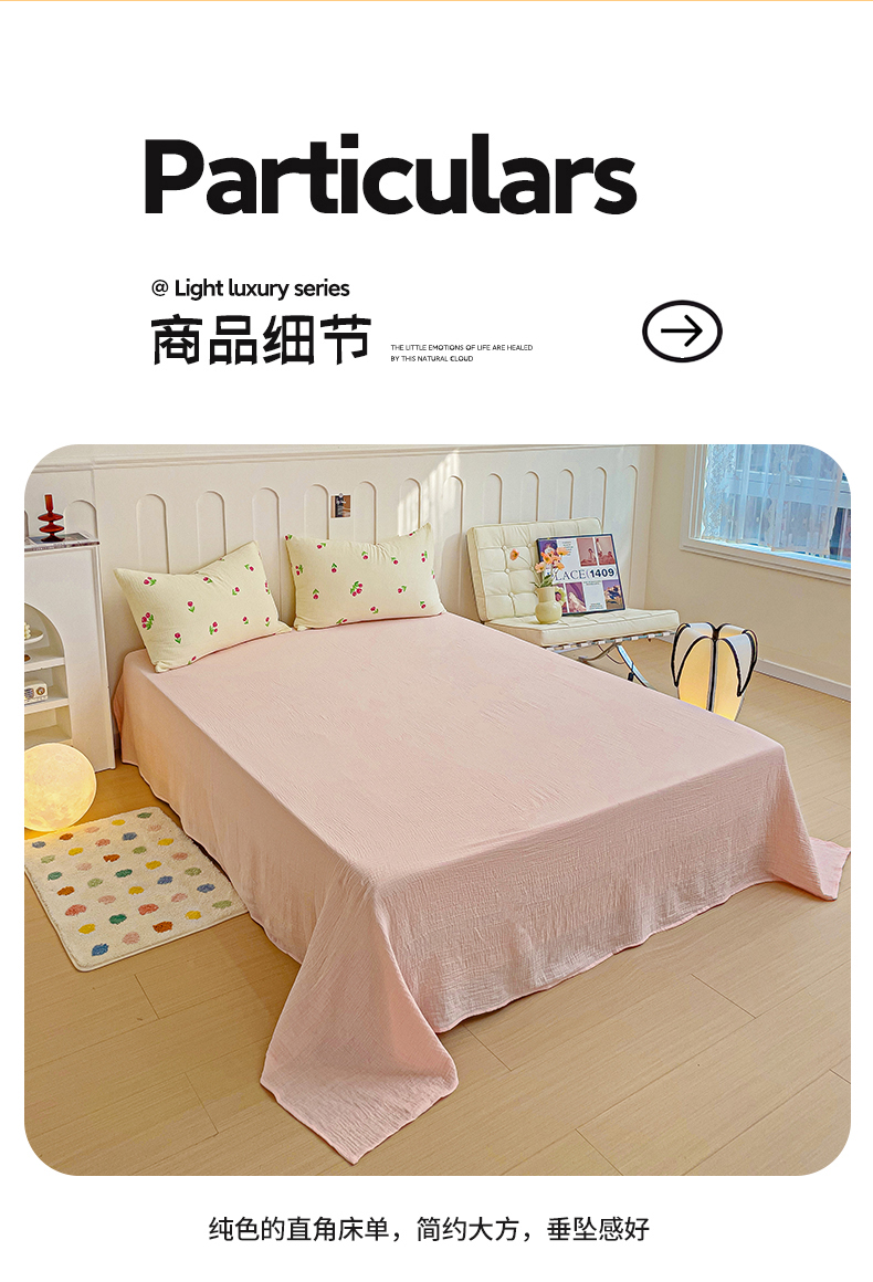 珺柔家纺 2024新款全棉皱皱双层纱印花四件套 粉色郁金香
