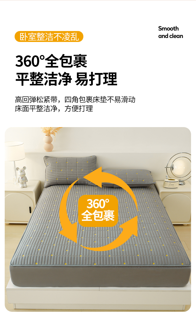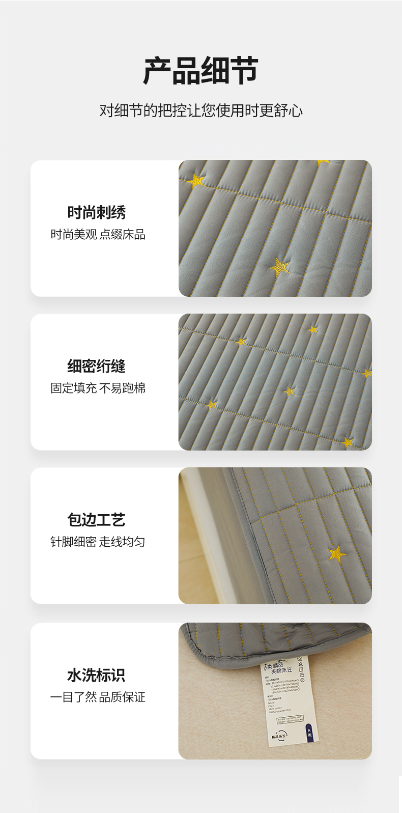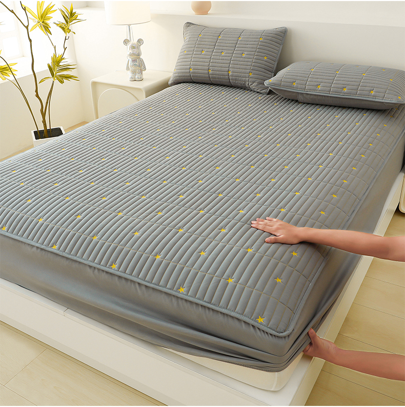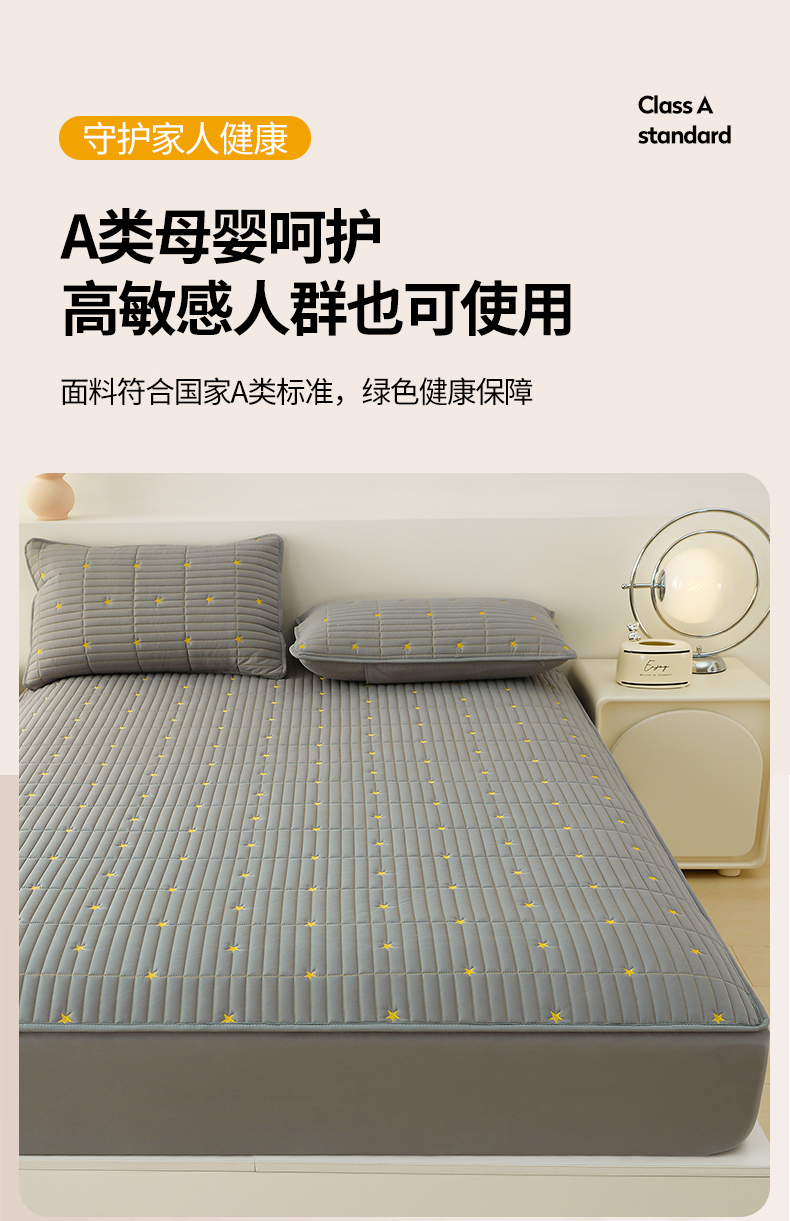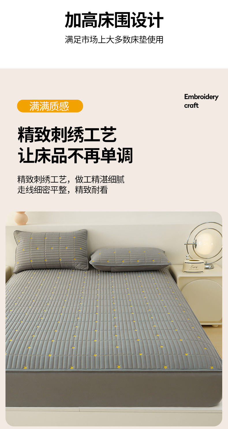 • 91家纺网 家纺一手货源 找家纺 丝涟家居 2025新款A类水洗亲肤棉刺绣防水防污床笠--星河 星河-灰色