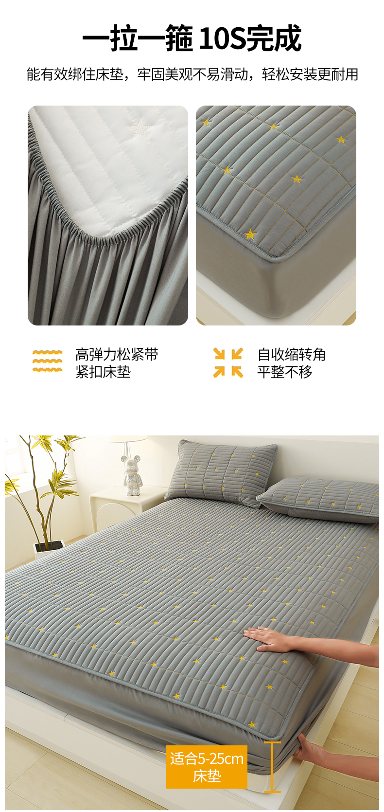 丝涟家居 2025新款A类水洗亲肤棉刺绣防水防污床笠--星河 星河-灰色