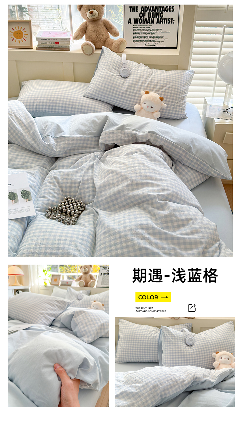 当前位置: 91家纺网 > 商品网购 > 床品套件 > 四件套 > 磨毛活性四件套 > (总)沐芷 2024小格子小清新条纹床单四件套三件套被套---