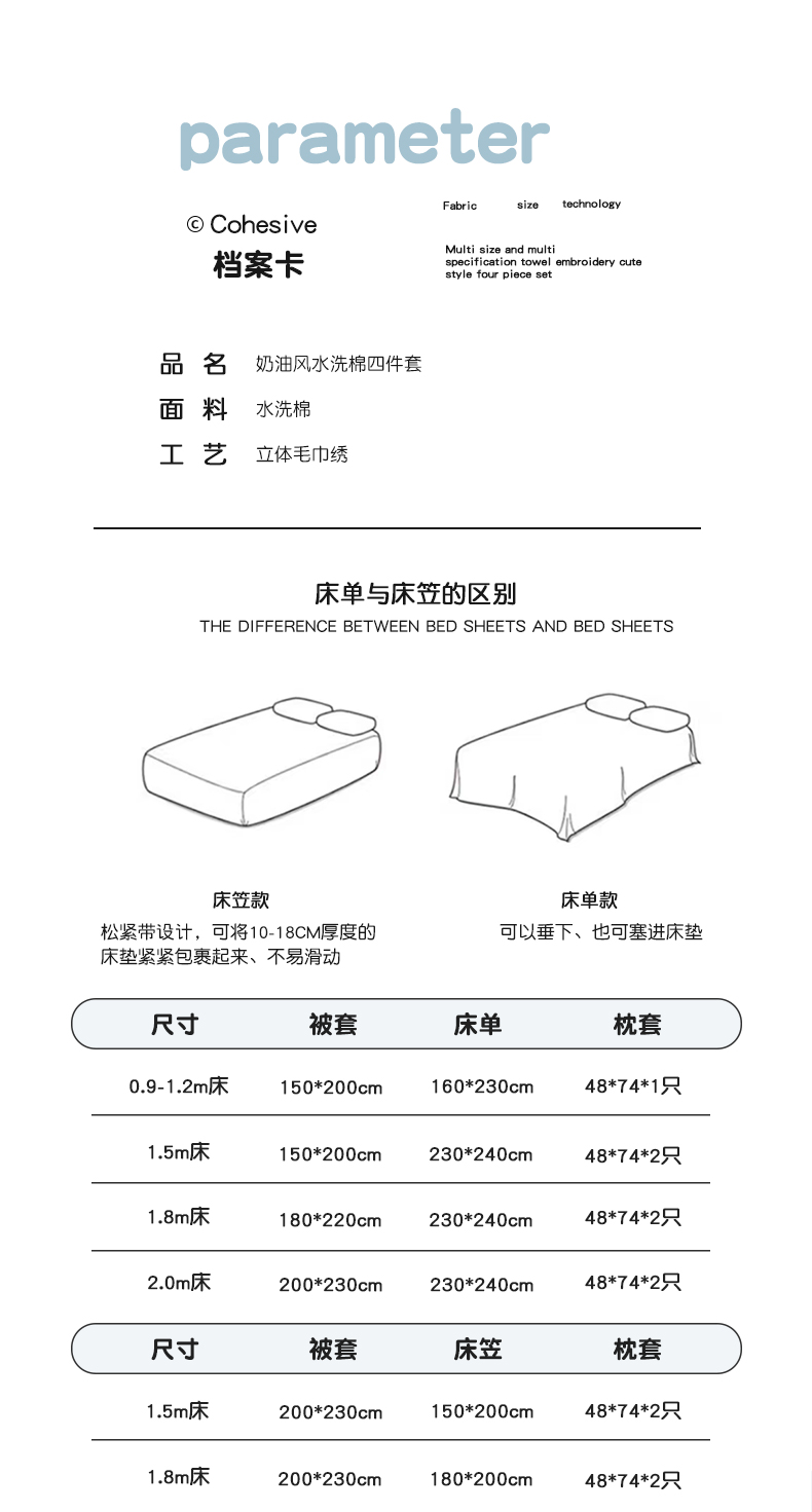 1.5m床笠款四件套(被套180*220cm) | ¥70.00 |