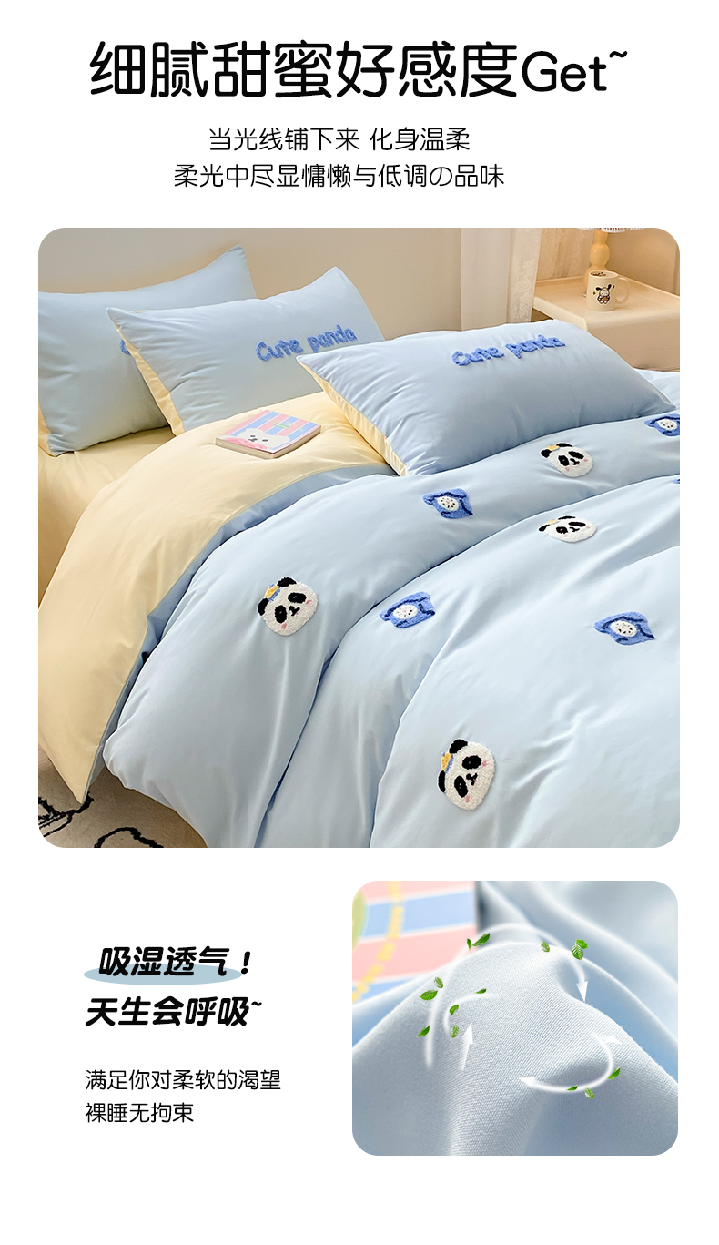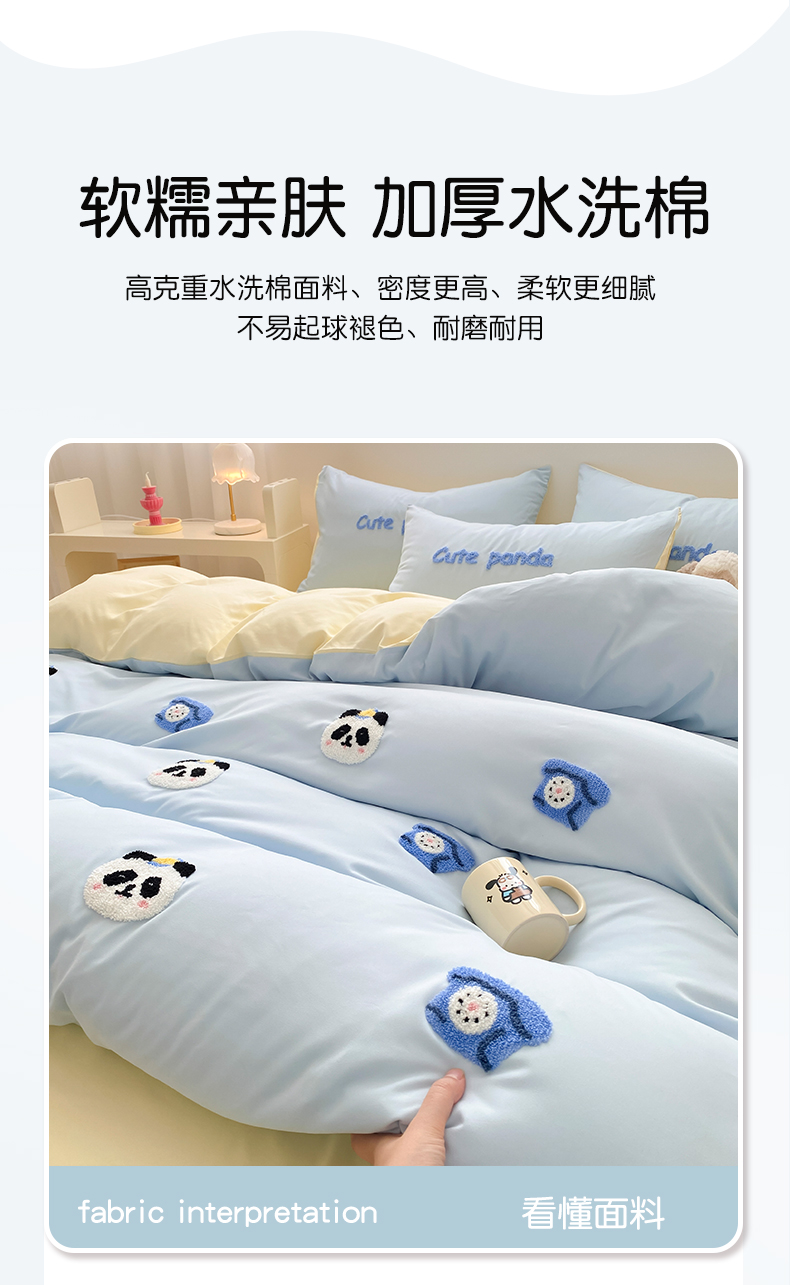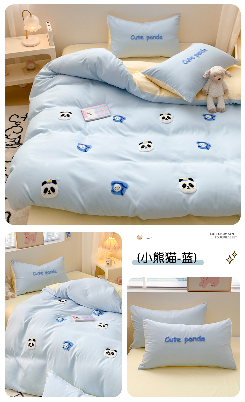 当前位置: 91家纺网 > 商品网购 > 床品套件 > 四件套 > 水洗棉四件套 > 尤米 2024新款奶油风水洗棉四件套 小熊猫-蓝