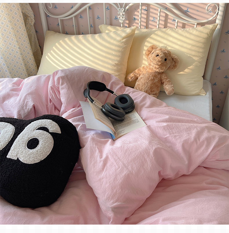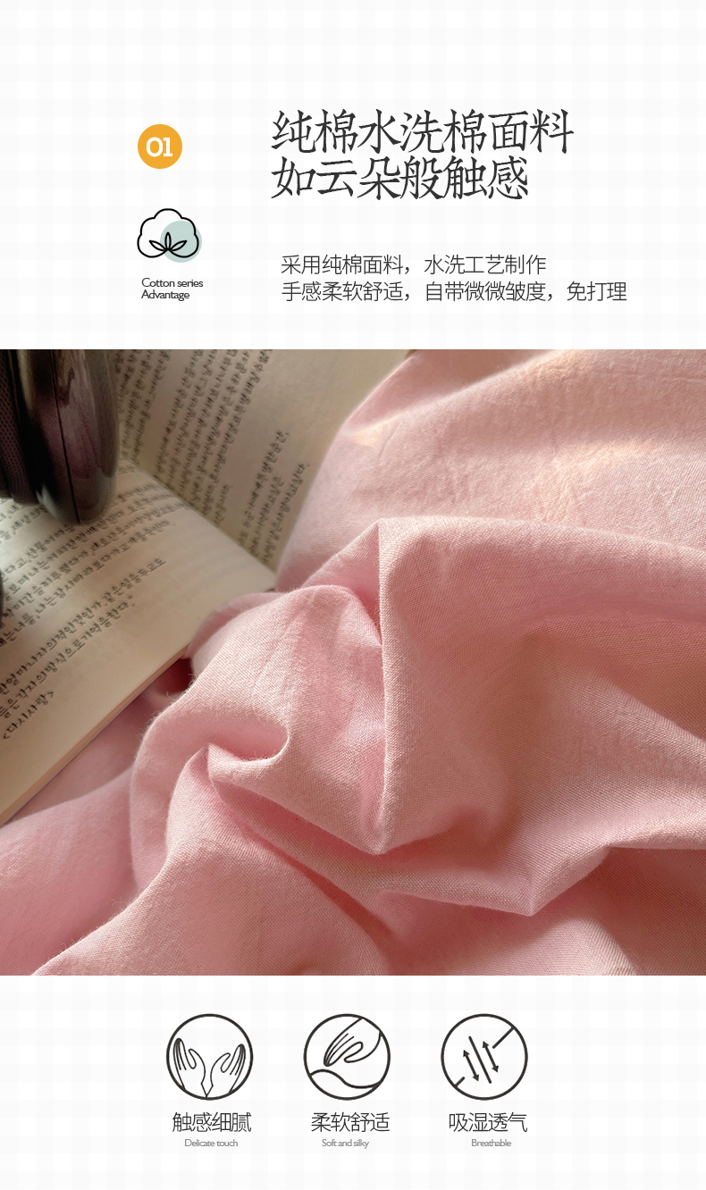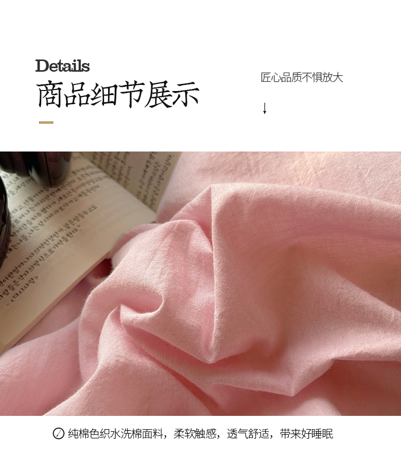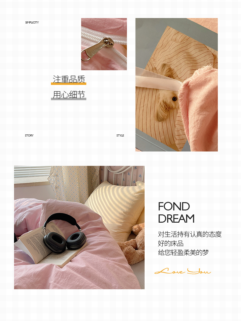 商品名称:桃子家居 2024新款ins少女软糯奶油撞色色织水洗棉纯棉系列四件套 水洗棉-色织绮梦粉