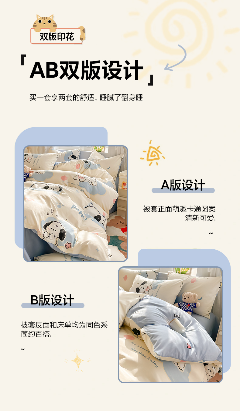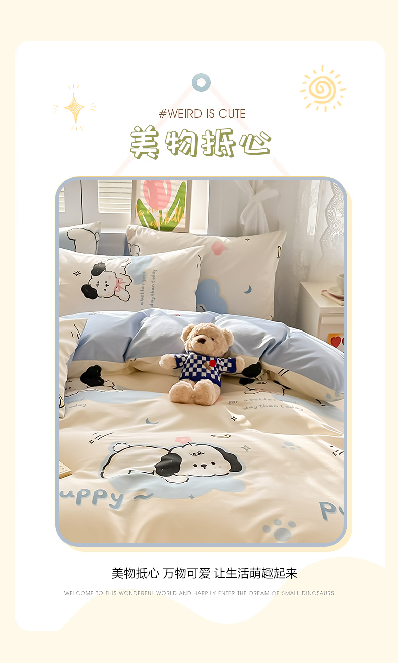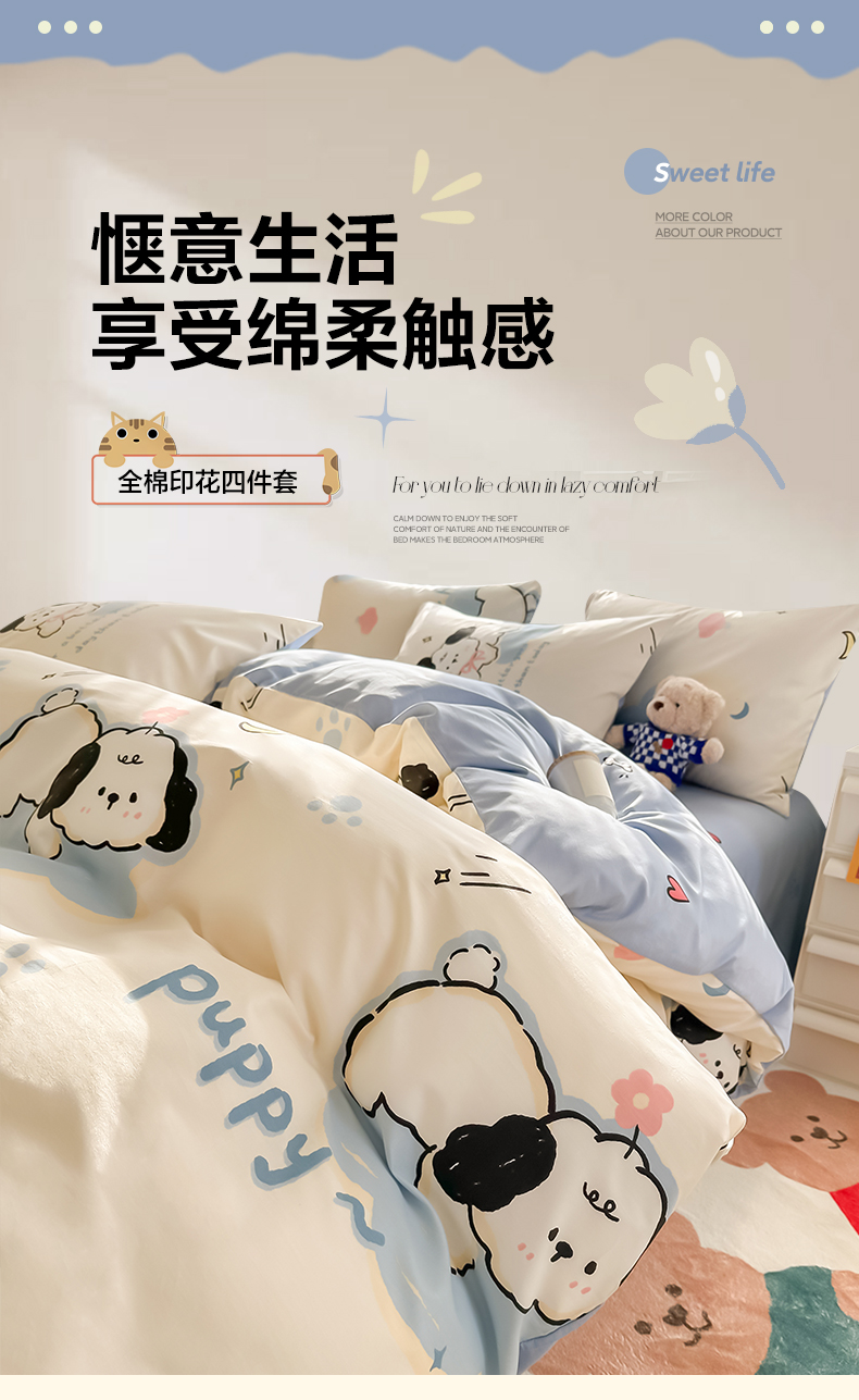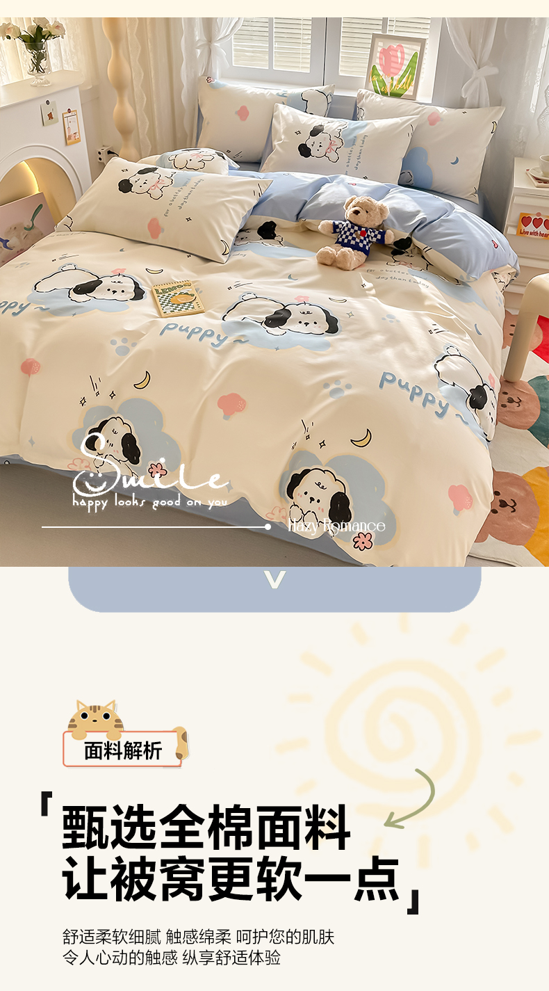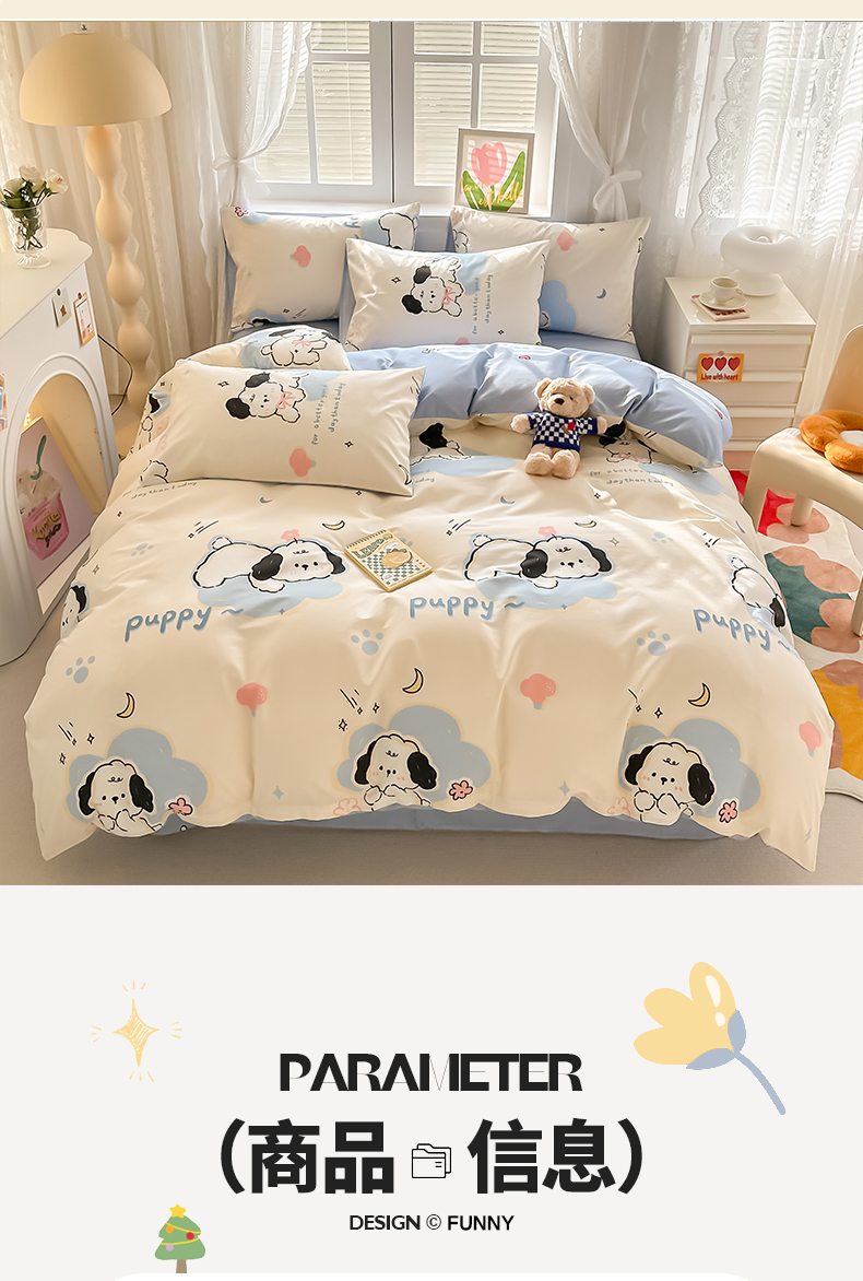 商品名称:沐辰 2024新款13372全棉印花四件套(第二批) 噗噗小狗