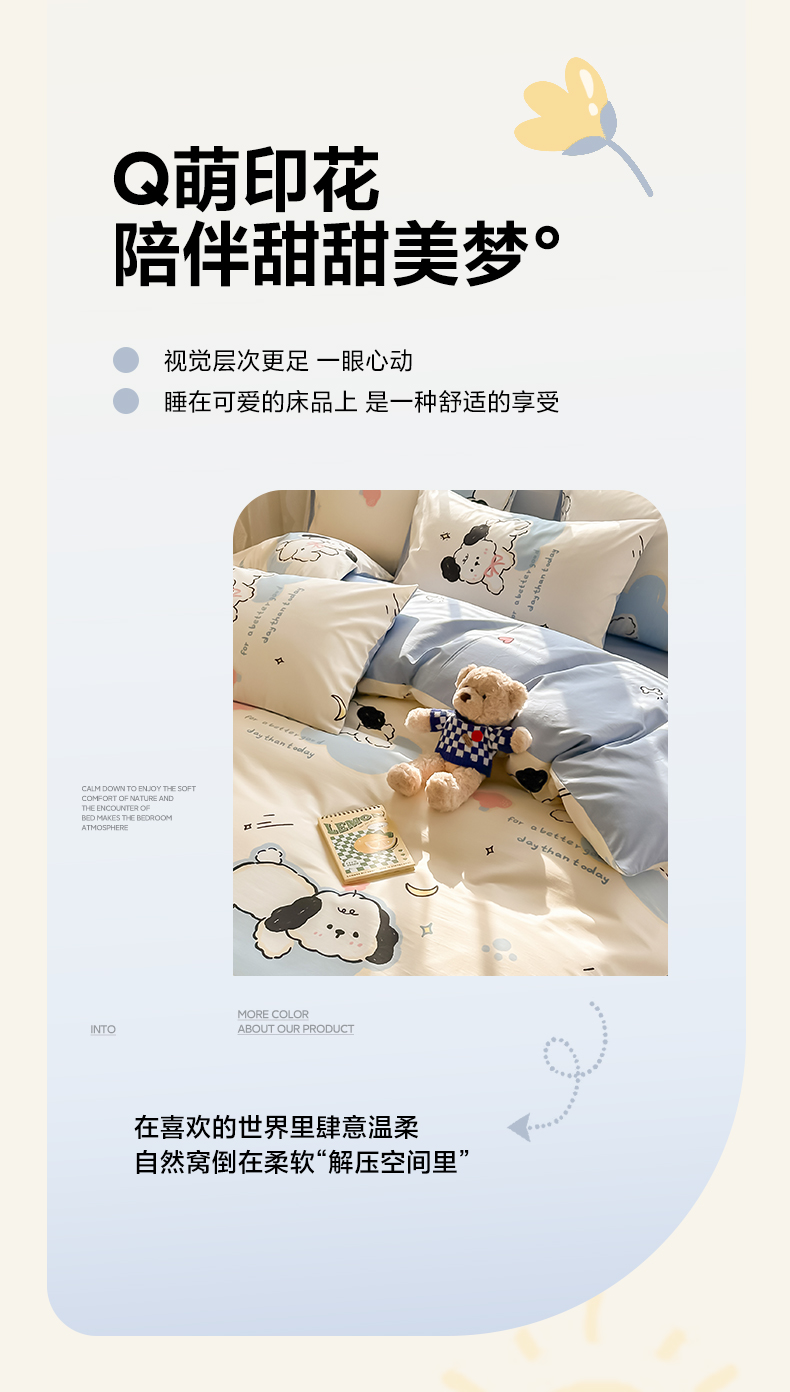 沐辰 2024新款13372全棉印花四件套(第二批) 噗噗小狗
