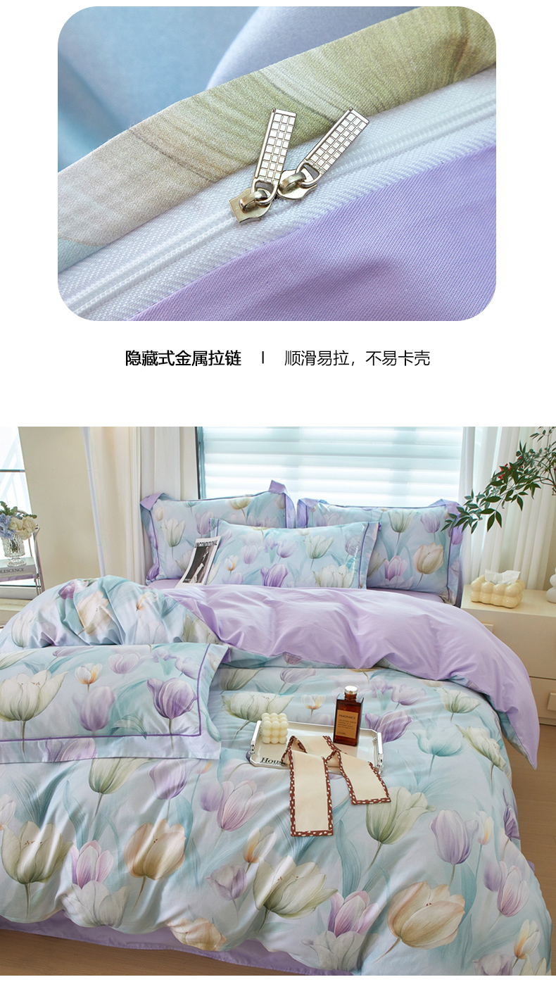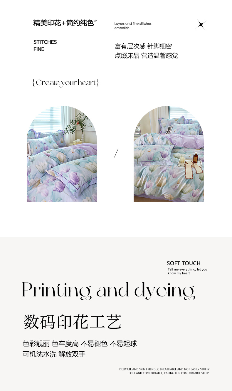 启航家居 2025春夏全棉铂金棉数码印花四件套 宛如初见兰