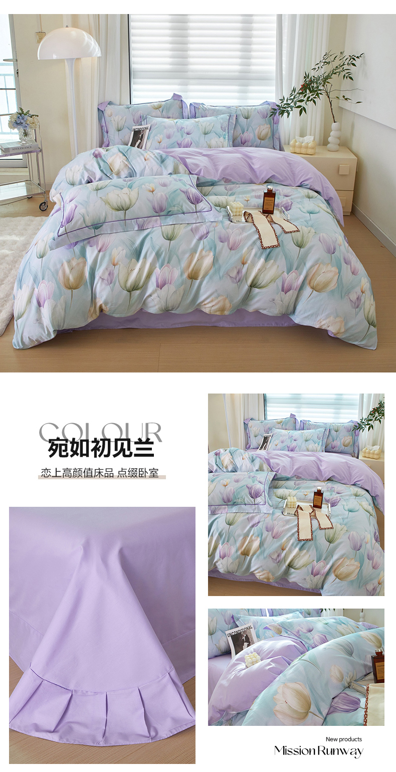 商品名称:启航家居 2025春夏全棉铂金棉数码印花四件套 宛如初见兰