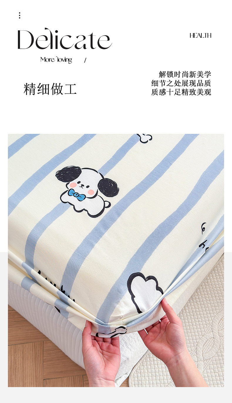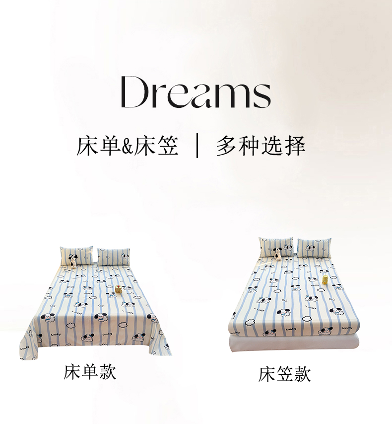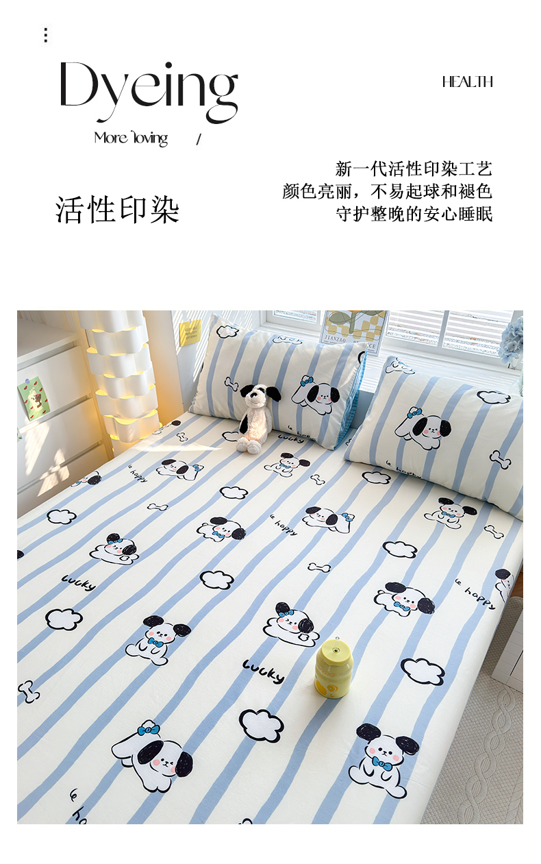 商品名称:清雅福 2024新款全棉13372小清新单床单 条纹狗狗
