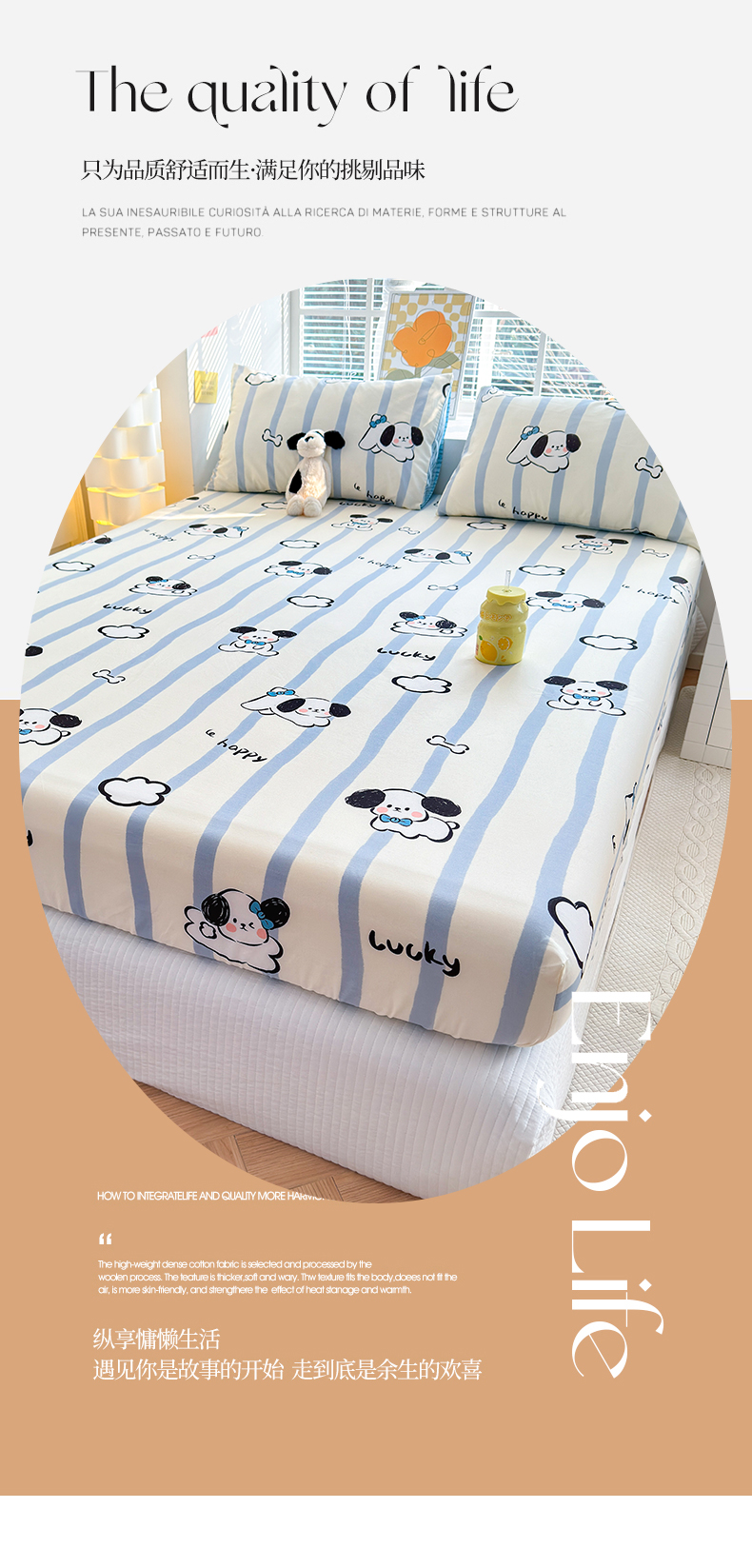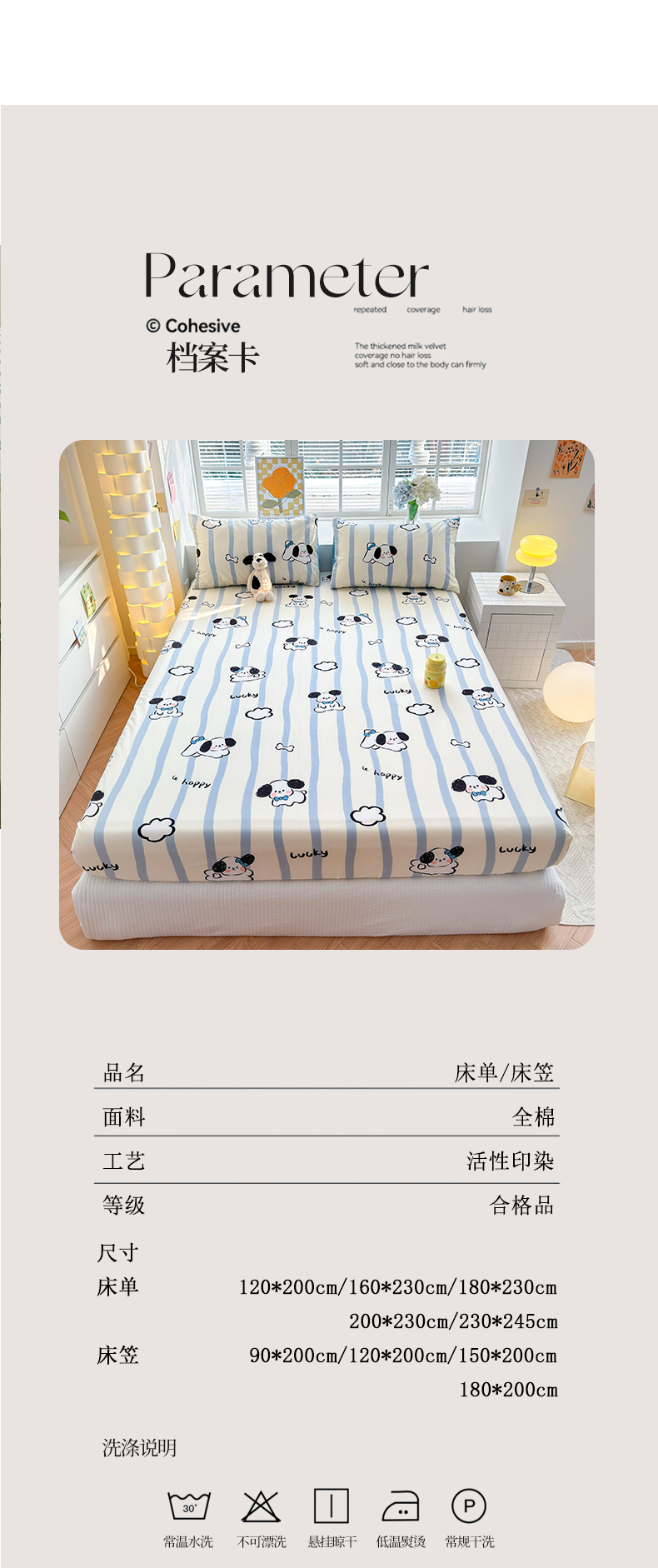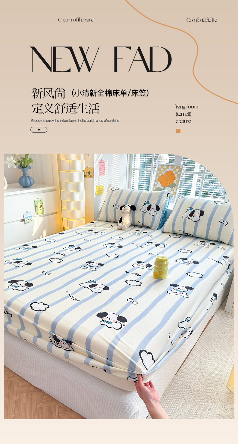 商品名称:清雅福 2024新款全棉13372小清新单床单 条纹狗狗