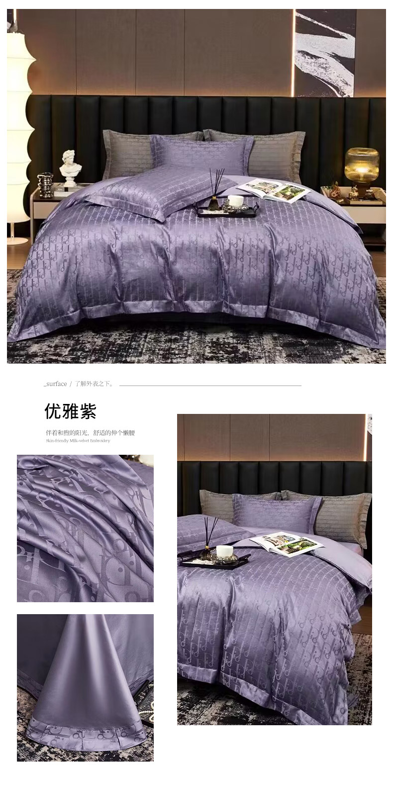 商品名称:卡迪亚家纺 2024新款180支长绒棉提花四件套 优雅紫