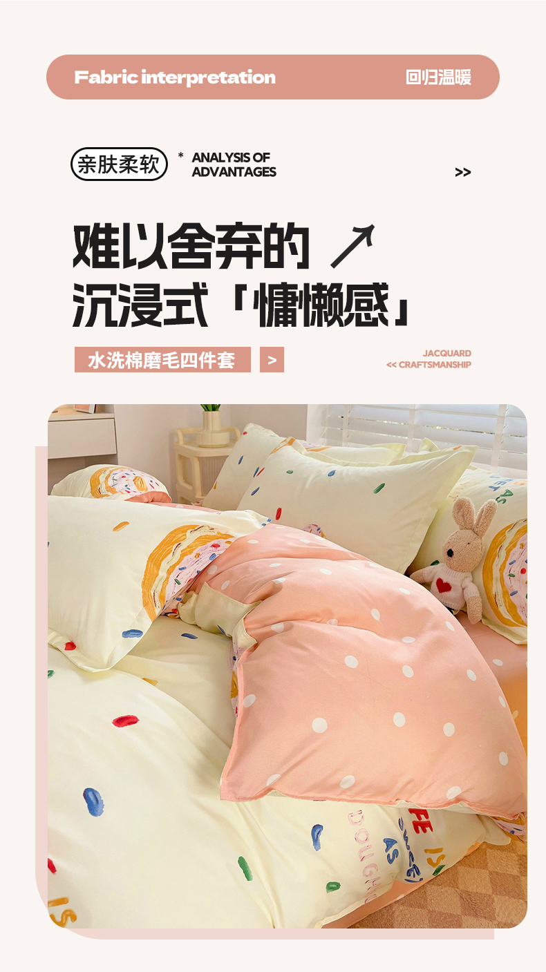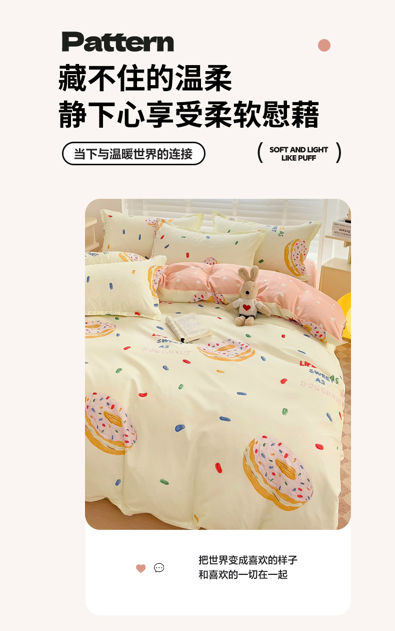 商品名称:楠沐家纺 2025新款亲肤柔软水洗棉磨毛印花被套 甜甜圈