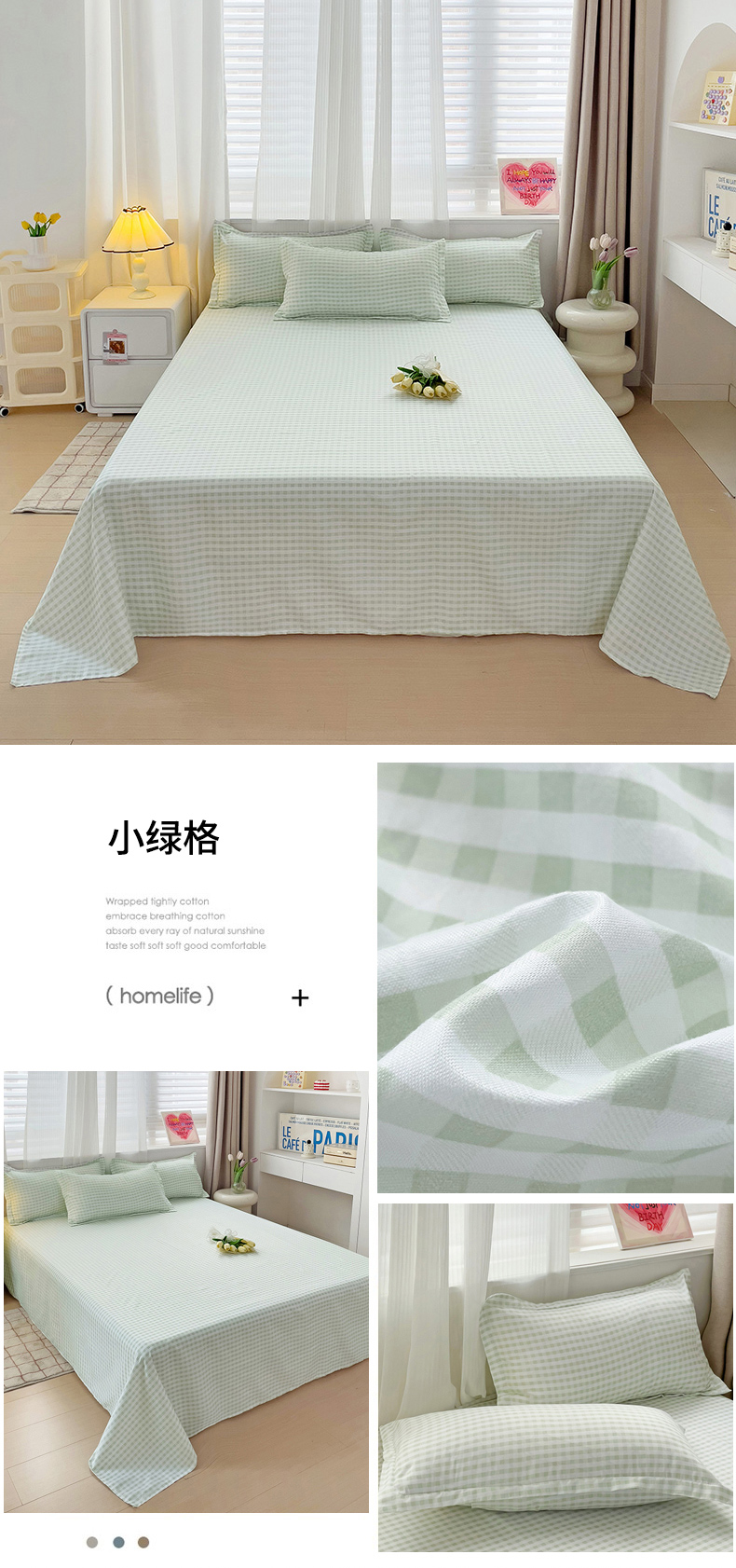 (总)楠沐家纺 2025年新款无印风学生印花四件套芦荟棉水洗棉,彩色波点,觅遇,晴空蓝格,亚麻灰格,烟雾灰格,英伦蓝格