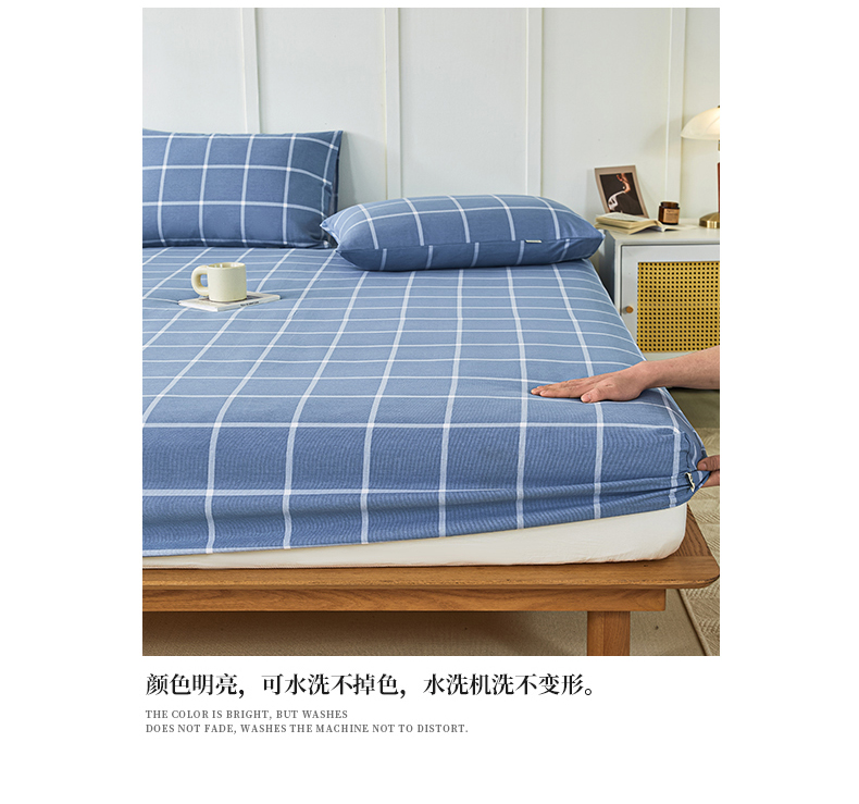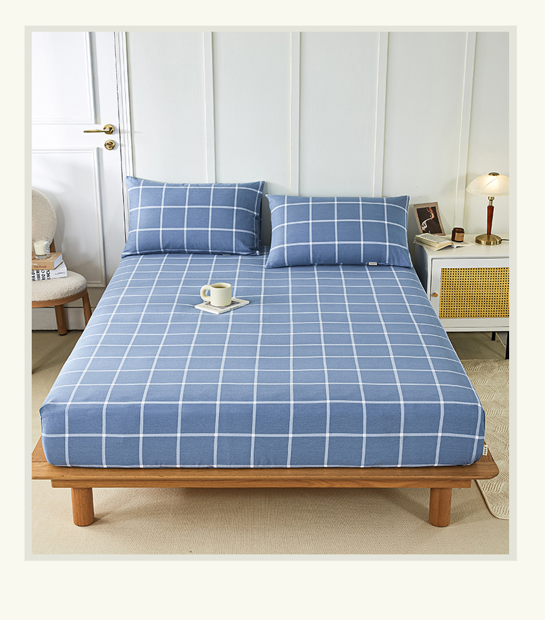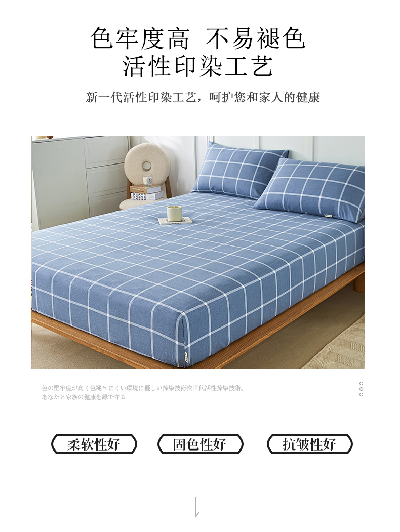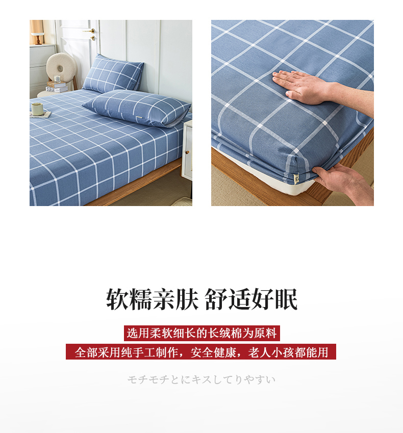 九沐良品 新款全棉无印老粗布单品床笠+三件套 柏拉图兰