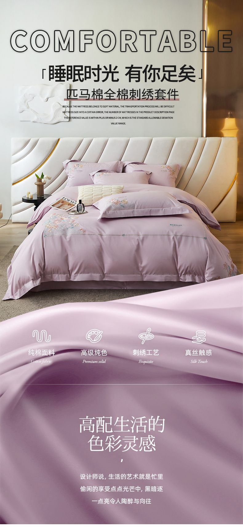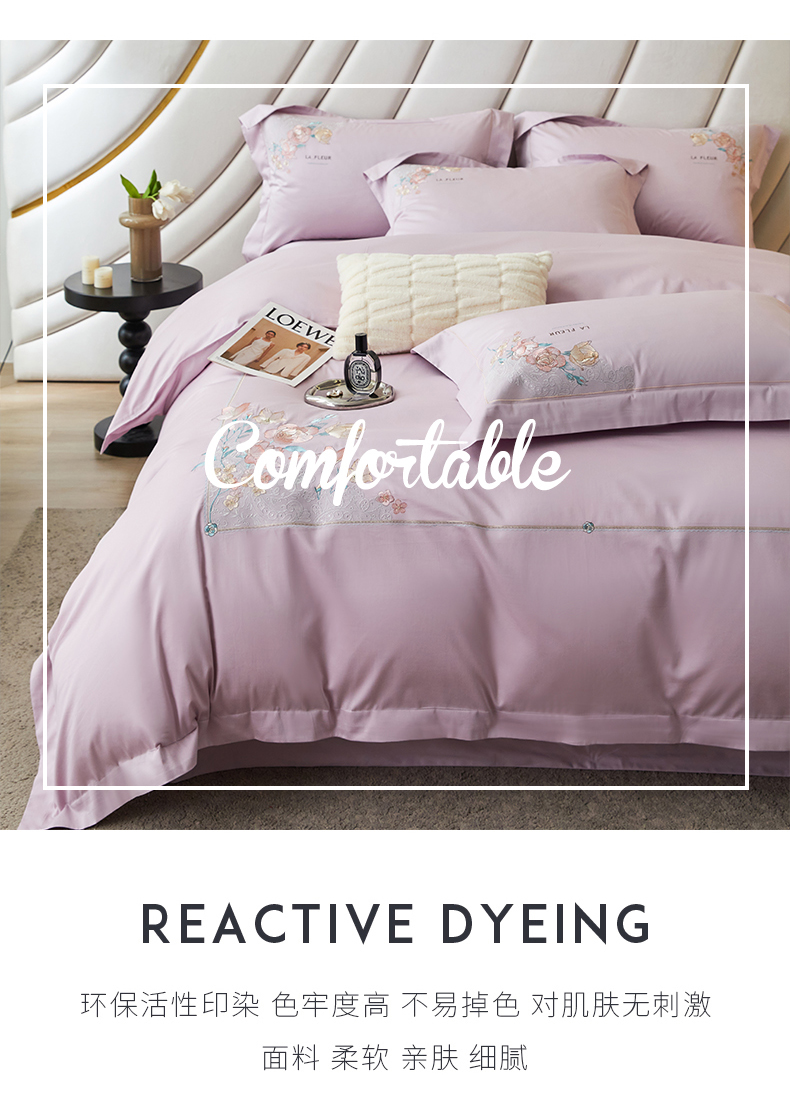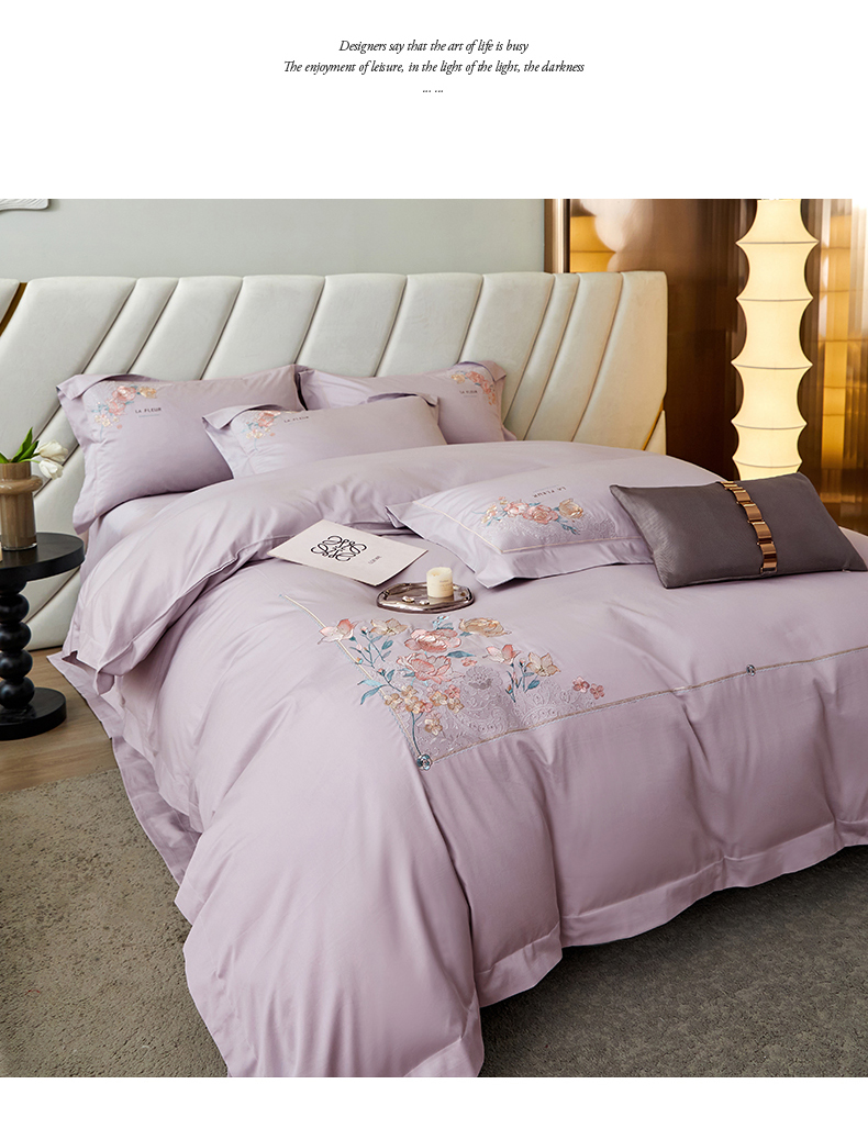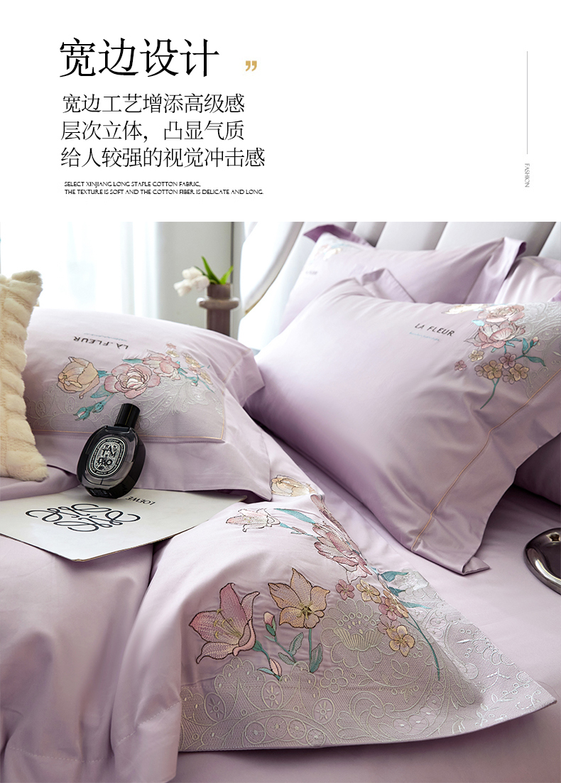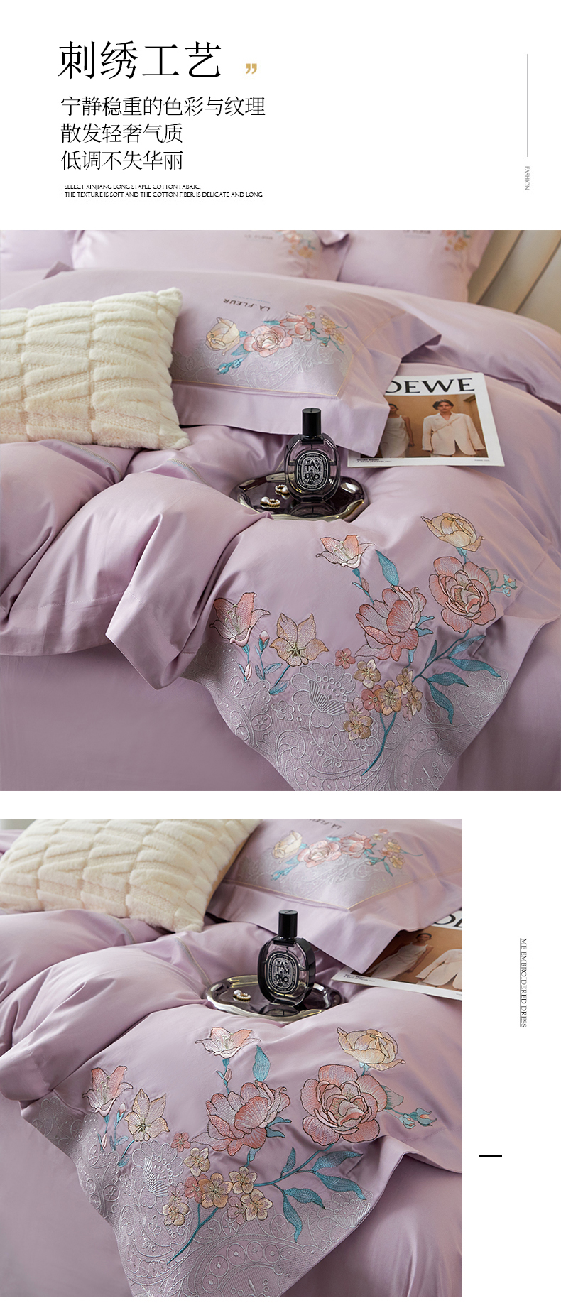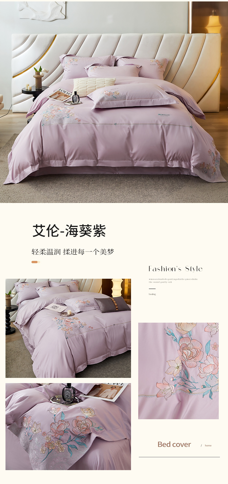 宏羽纺2024新款高支高密全棉刺绣四件套-艾伦系列 艾伦 海葵紫