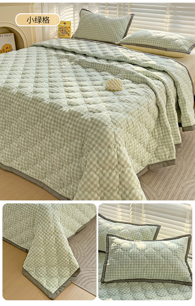 纽缦家纺 2024纯色云朵棉加棉加厚床盖(床单) 小绿格