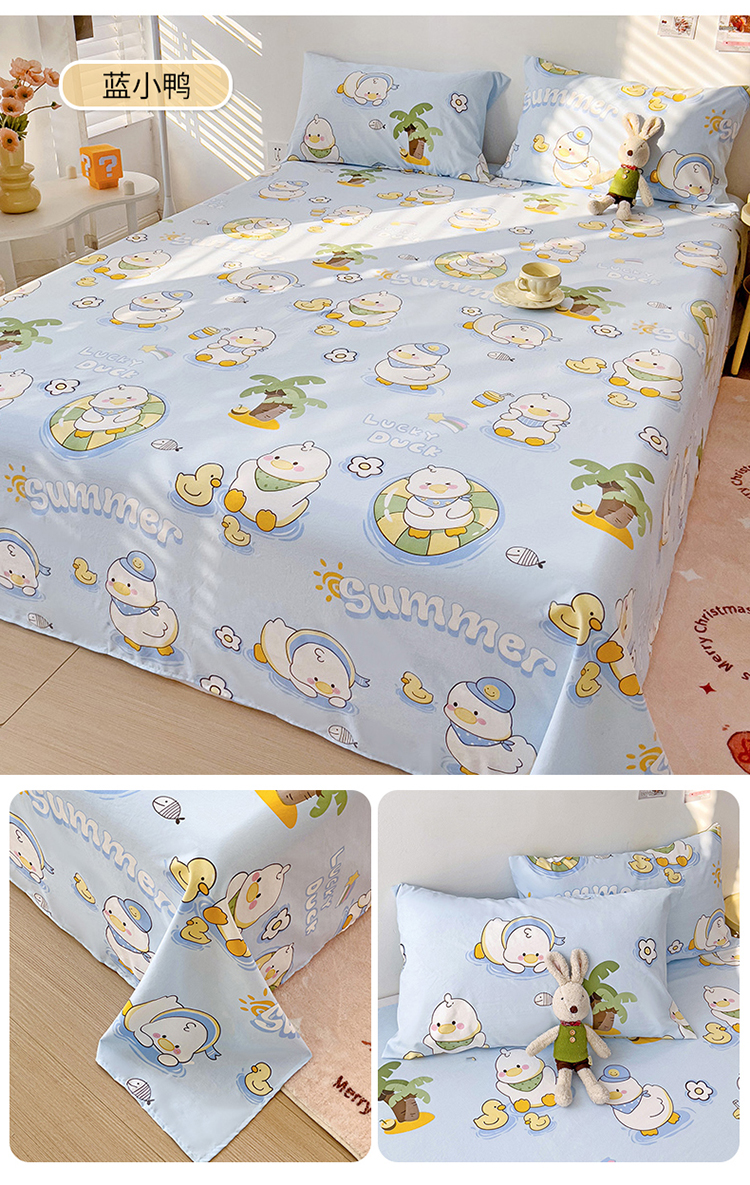 纽缦家纺 2024水洗双层纱床单 蓝小鸭