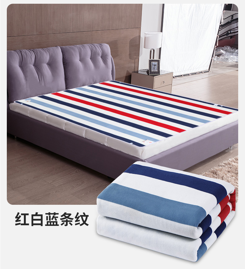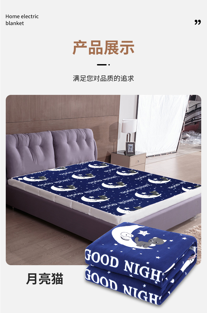 (总)智能恒温电暖毯单人电热毯双人电褥子双控安全自动断电(拍法一),月亮猫,红白蓝条纹,浅灰色,咖色
