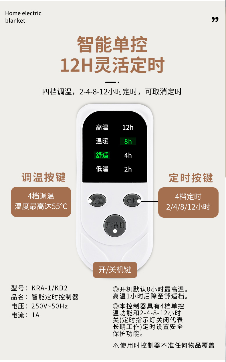 商品名称:(总)智能恒温电暖毯单人电热毯双人电褥子双控安全自动断电(拍法二)
