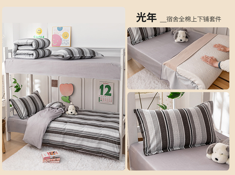 纯棉印花13070学生三件套寝室全棉宿舍床套件上下铺床品 光年