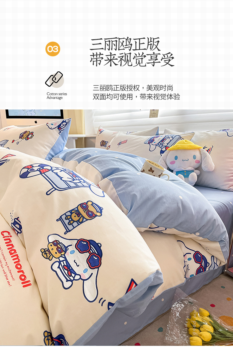 当前位置: 91家纺网 > 商品网购 > 床品套件 > 四件套 > 全棉活性四件套 > 麦伦家居 2024新款三丽欧卡通印花全棉四件套纯棉四件套 假日玉桂狗