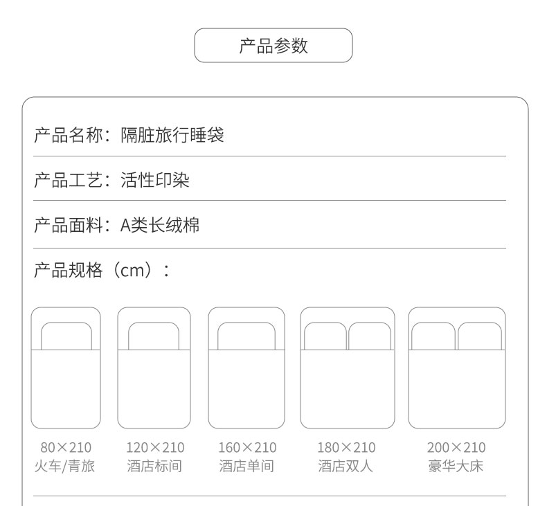 商品名称:(总)云栖家居 2024A类60支长绒棉酒店隔脏睡袋纯棉旅行睡袋一体式床单