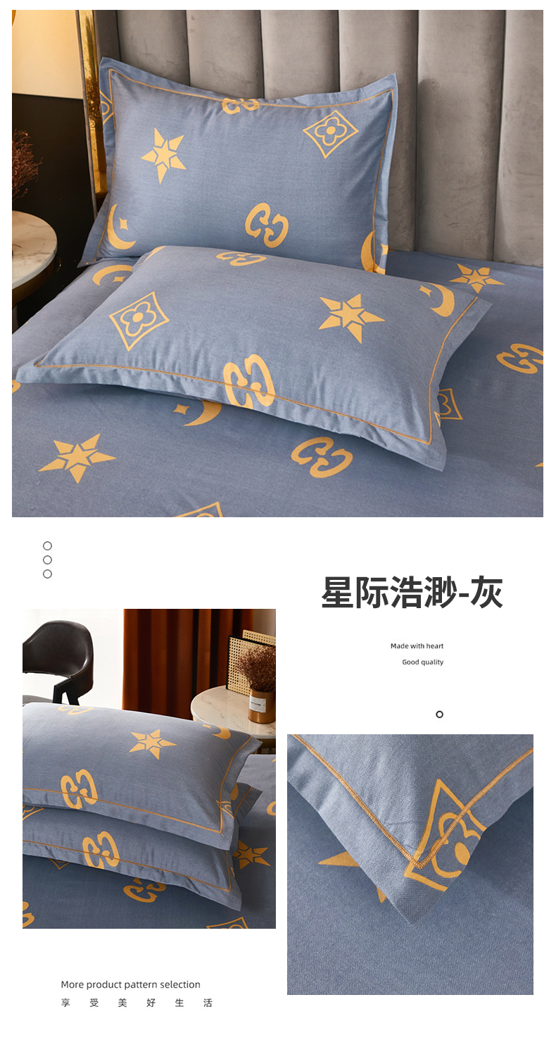 尚帛 2024新款新疆棉磨毛印花单品枕套 星际浩渺-灰