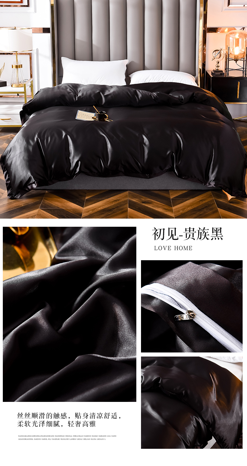 商品名称:经年 2025新款奢华真丝手感冰丝单品套件-初见系列 单被套 初见-贵族黑