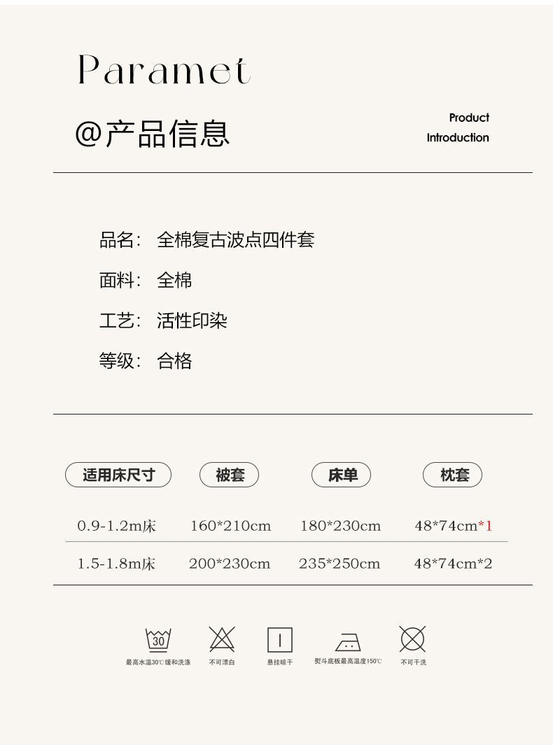 商品名称:(总)昔可家纺 2024新款复古波点系列四件套