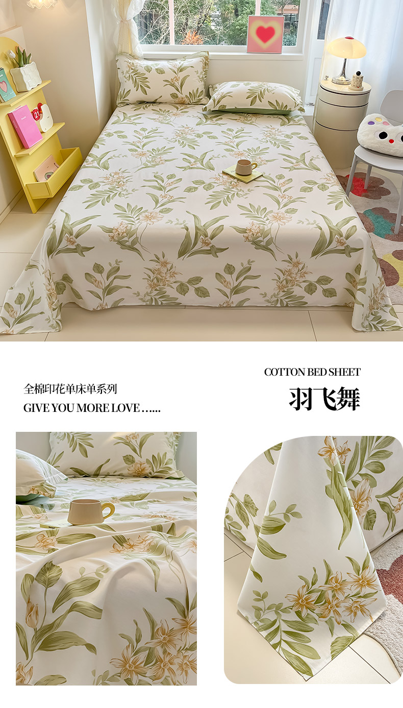 绵庭家纺 2024新款AB版12868全棉印花单床单 羽飞舞