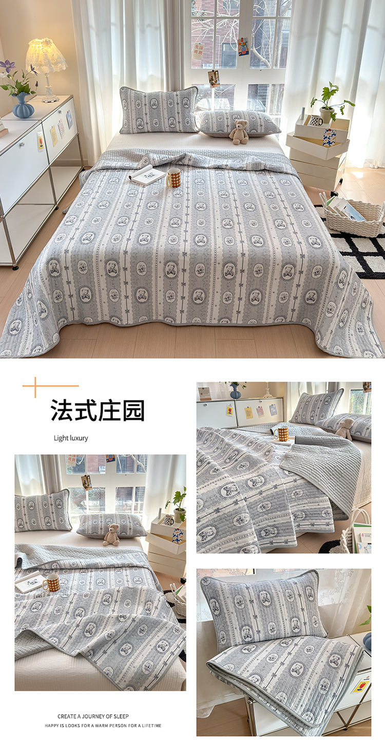 当前位置: 91家纺网 > 商品网购 > 床品套件 > 三件套 > 美优兰 2025春款全棉单面高温砂洗床盖 法式庄园