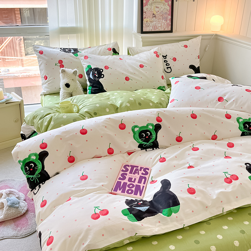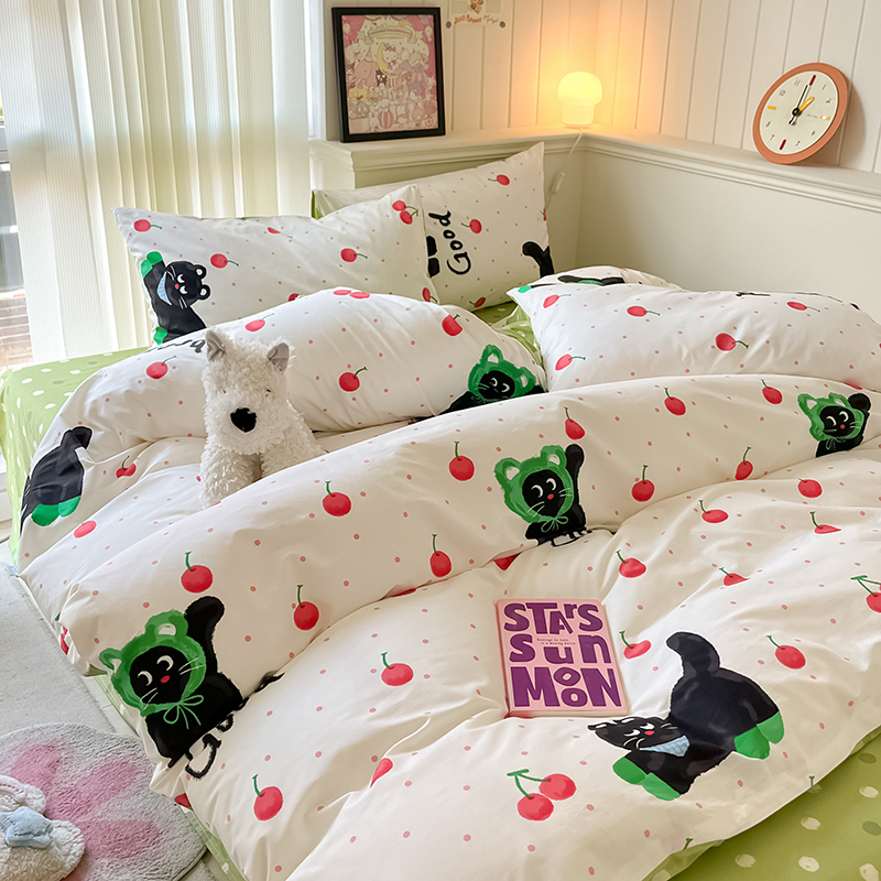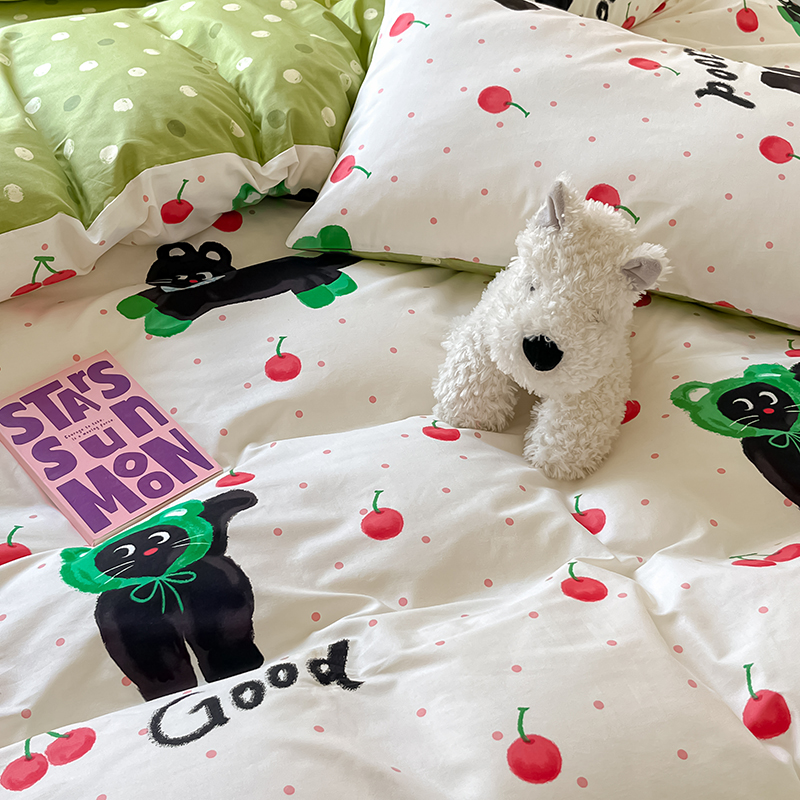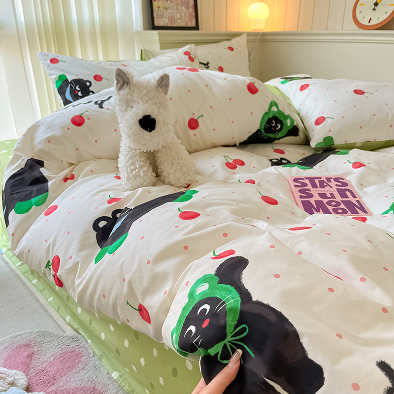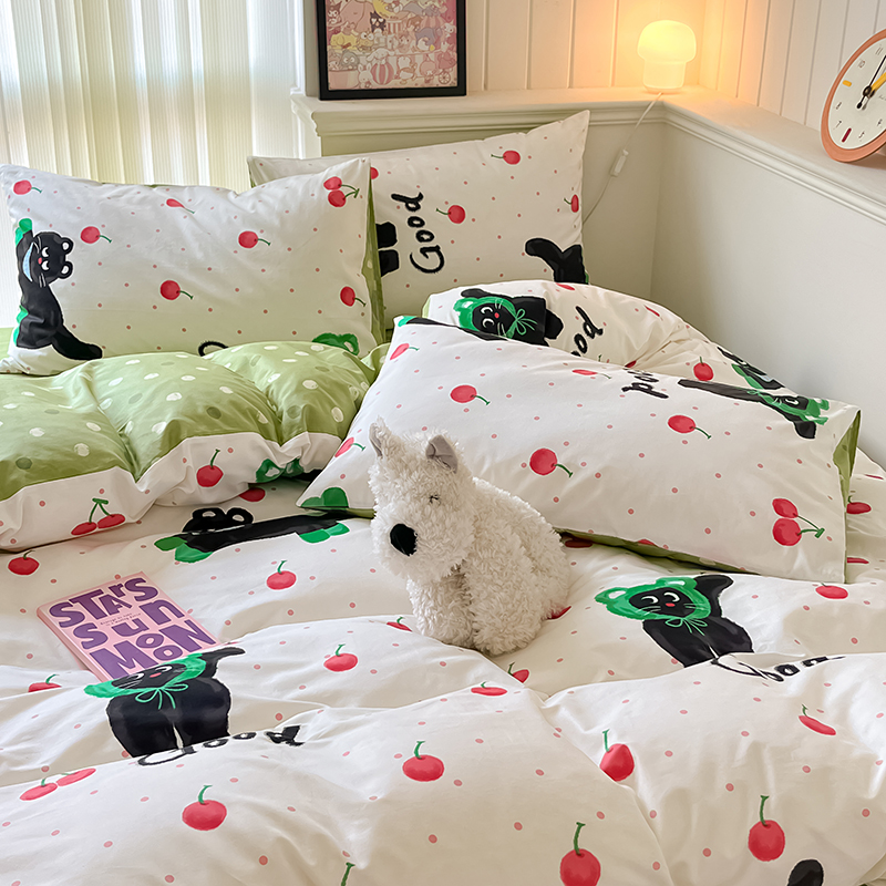 商品名称:顾里2024新款40支13372全棉四件套-韩风系列 樱桃黑猫