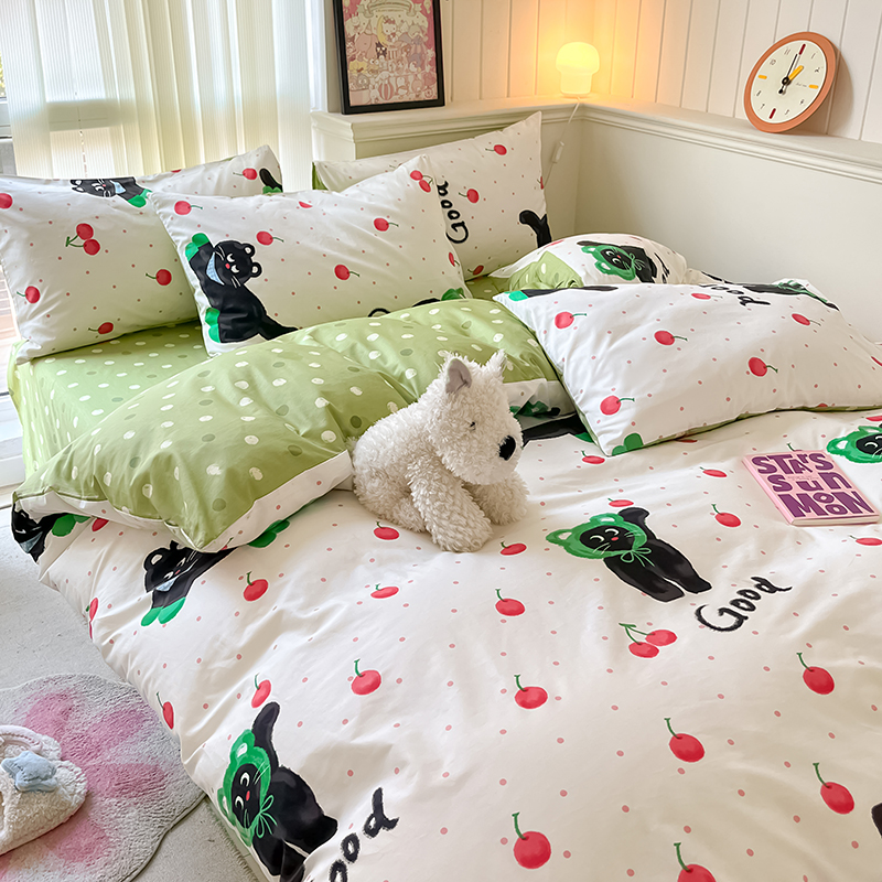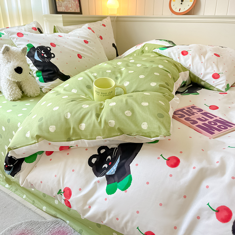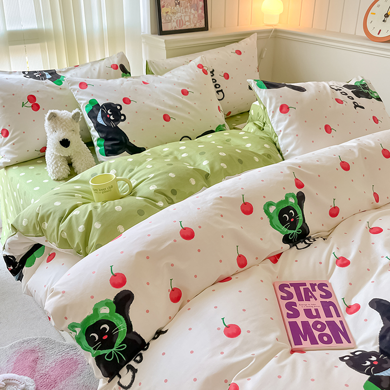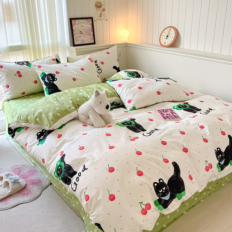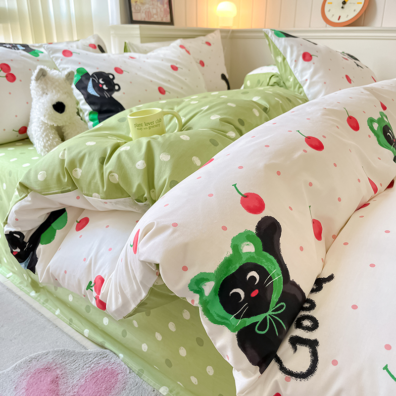 商品名称:顾里2024新款40支13372全棉四件套-韩风系列 樱桃黑猫