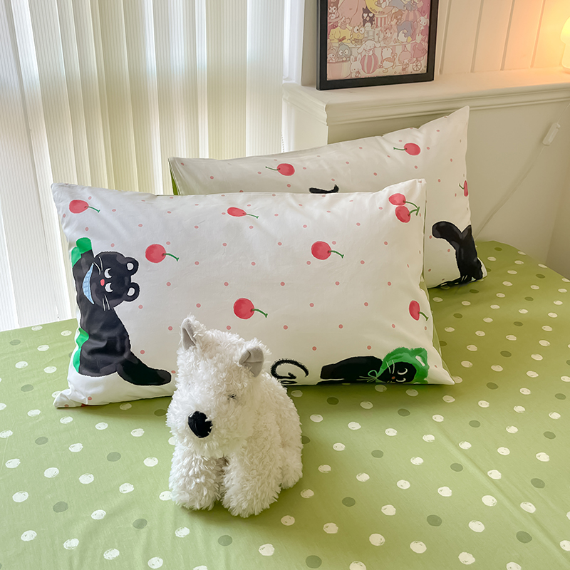 顾里2024新款40支13372全棉四件套-韩风系列 樱桃黑猫