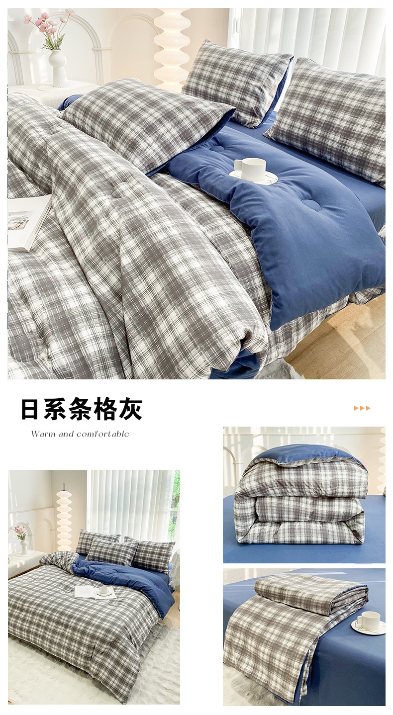 当前位置: 91家纺网 > 商品网购 > 床品套件 > 四件套 > 夏被四件套 > 啊雅家居 2025新款水洗棉条纹印花夏被冬被四件套-床笠款 冬被 日系条格灰