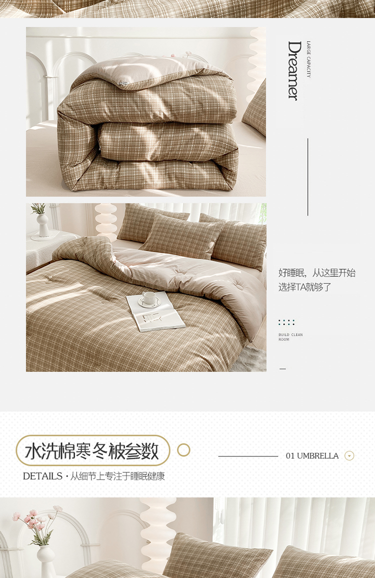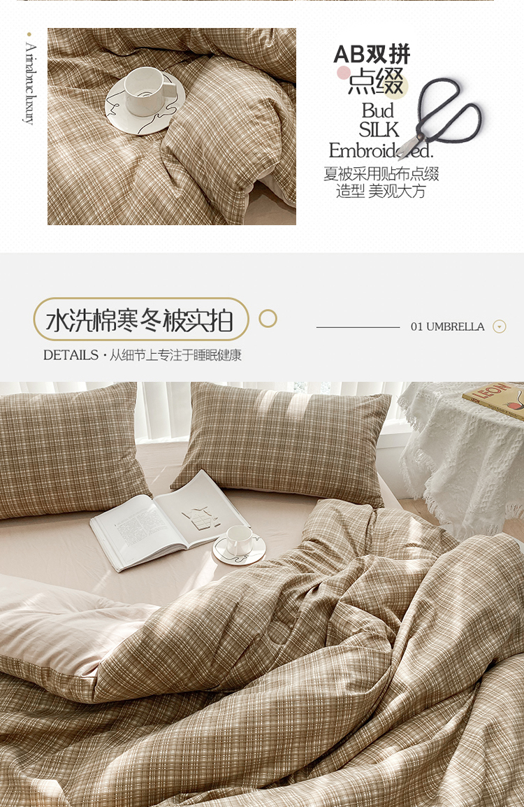 当前位置: 91家纺网 > 商品网购 > 床品套件 > 四件套 > 夏被四件套 > 啊雅家居 2025新款水洗棉条纹印花夏被冬被四件套-床笠款 冬被 日系条格咖