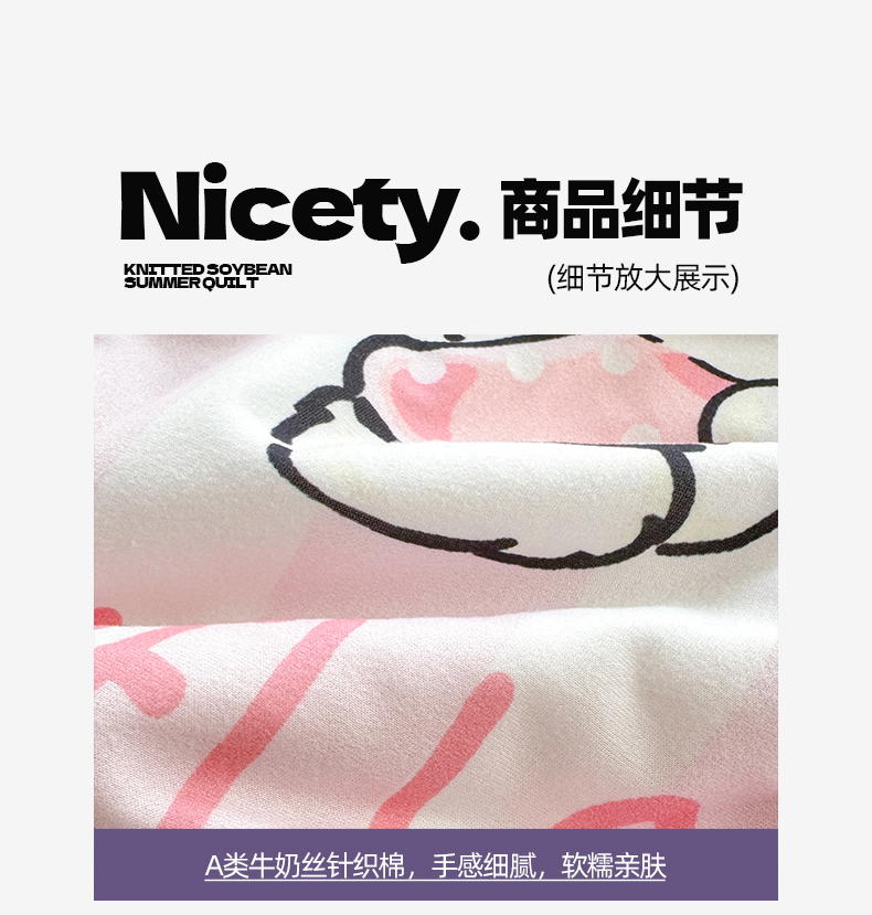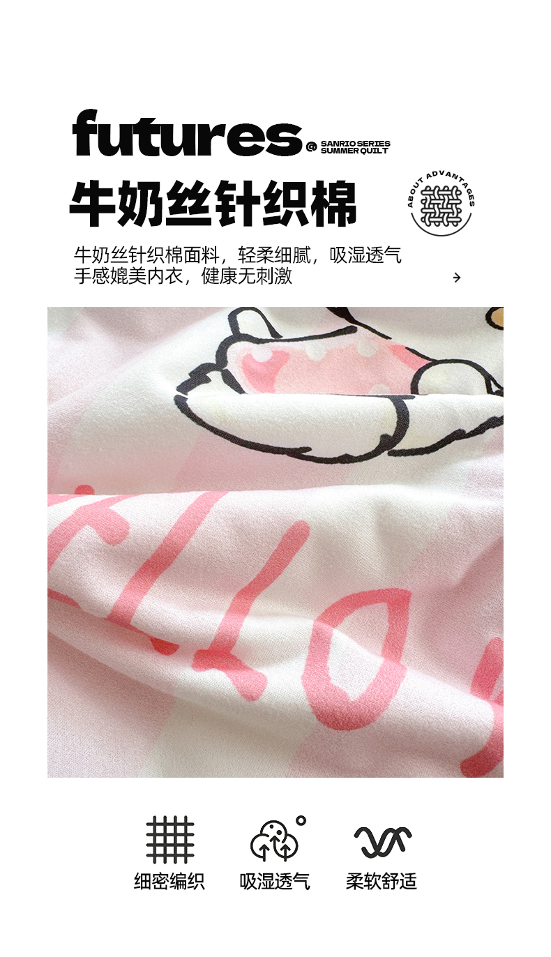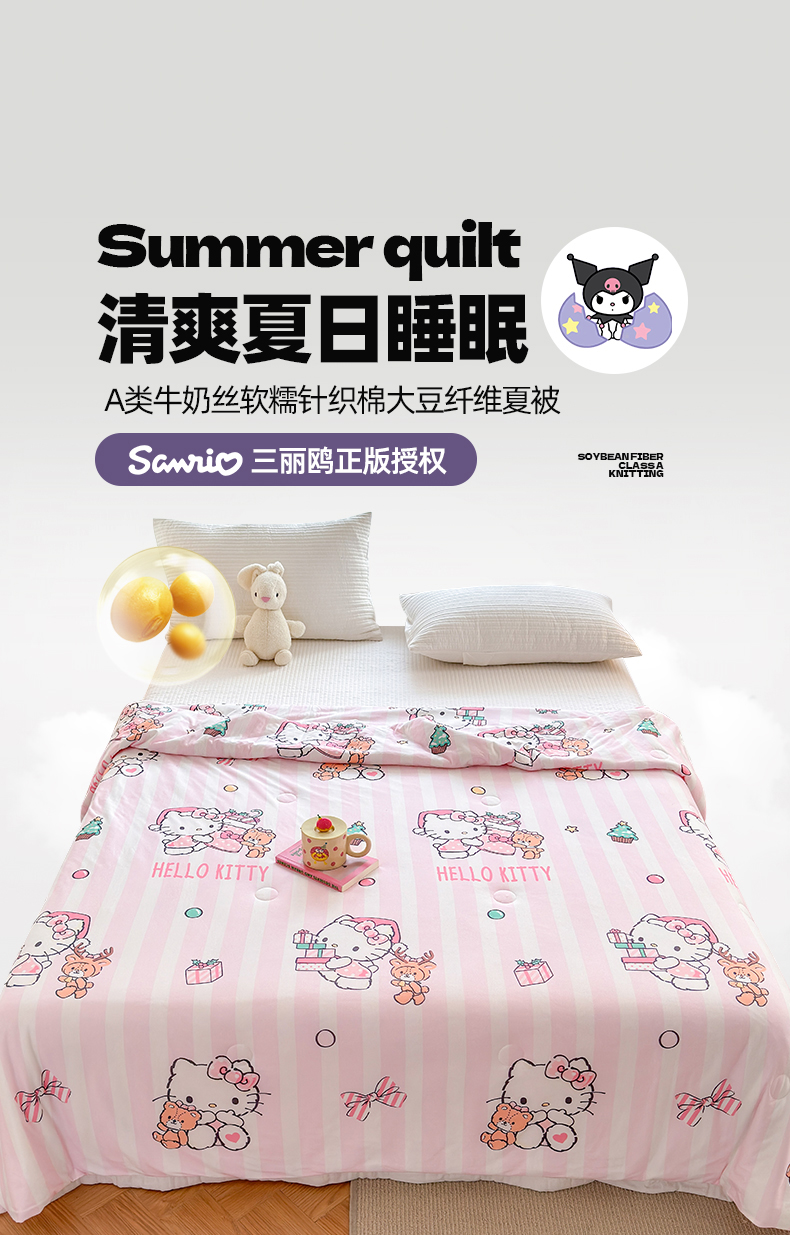 • 91家纺网 家纺一手货源 找家纺 博雅 2024新款三丽鸥正版系列A类牛奶丝软糯针织棉大豆纤维夏被 针织棉(带防伪标)kt小熊