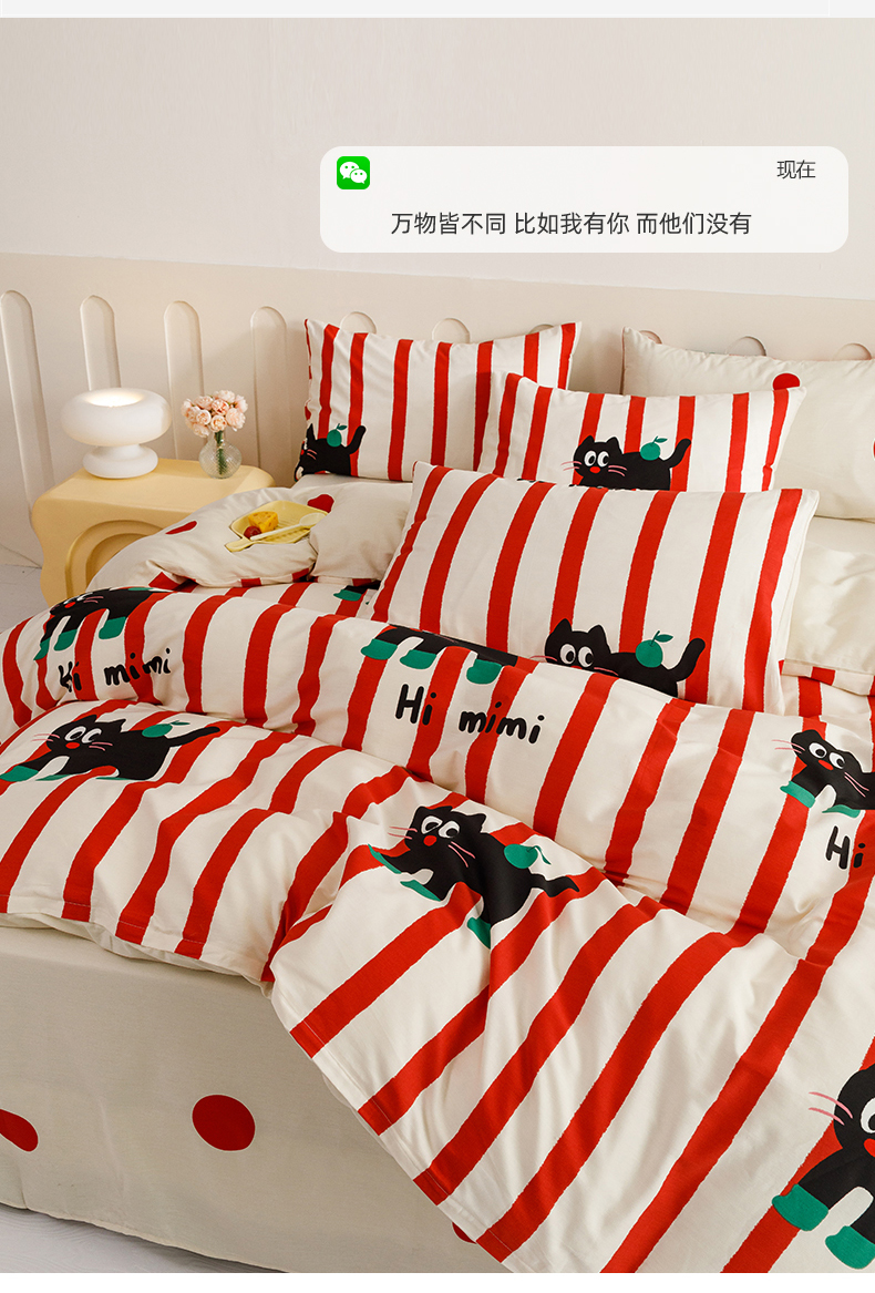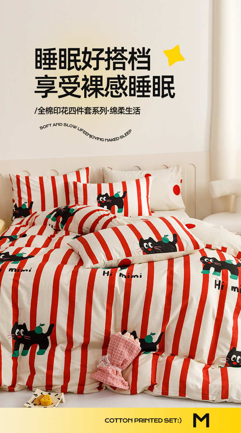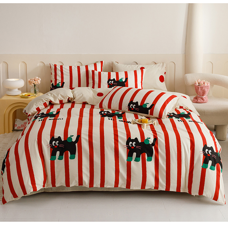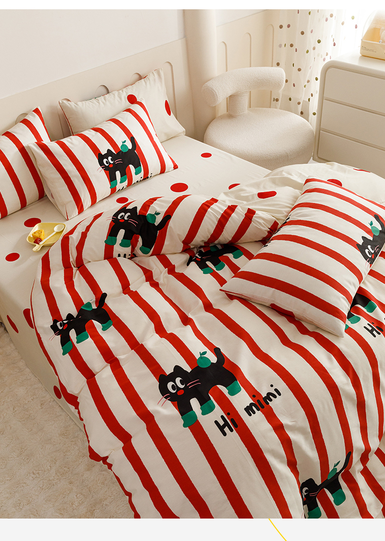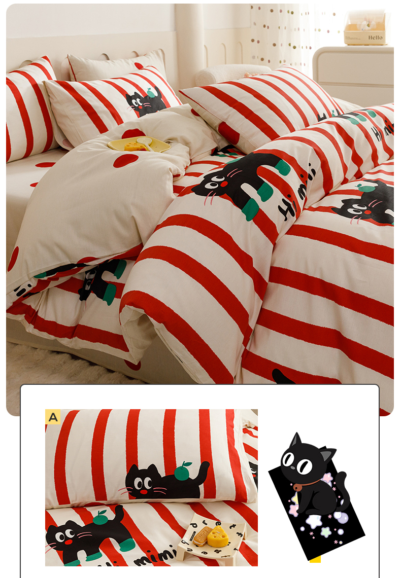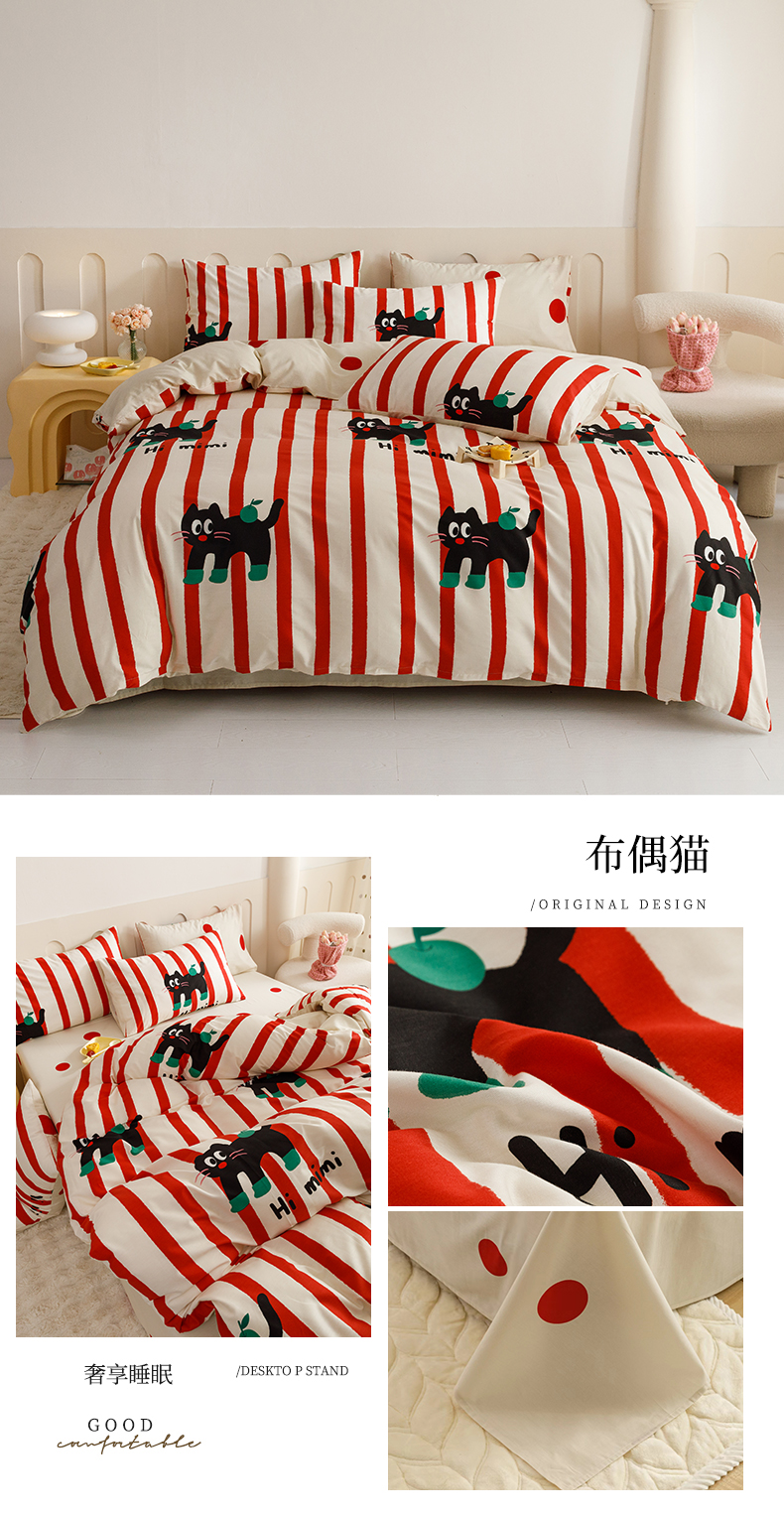 当前位置: 91家纺网 > 商品网购 > 床品套件 > 四件套 > 全棉普通四件套 > 红粉佳人家纺 2024新款纯棉卡通小清新四件套及单品 布偶猫-1