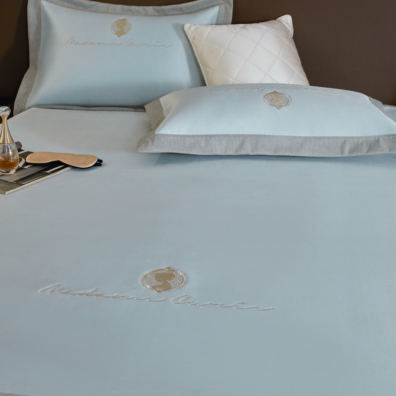 商品名称:三味舒屋 2025新款凉感印花梦莎刺绣冰丝凉席-风格一 梦莎蓝-床笠款