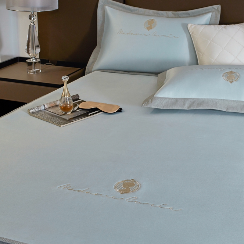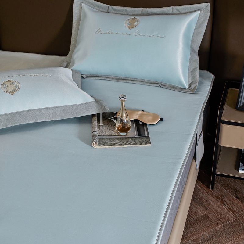 三味舒屋 2025新款凉感印花梦莎刺绣冰丝凉席-风格一 梦莎蓝-床笠款