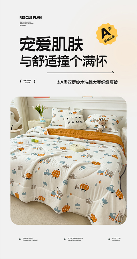 商品名称:网客家纺 2024新款双层纱水洗印花夏被 小汽车