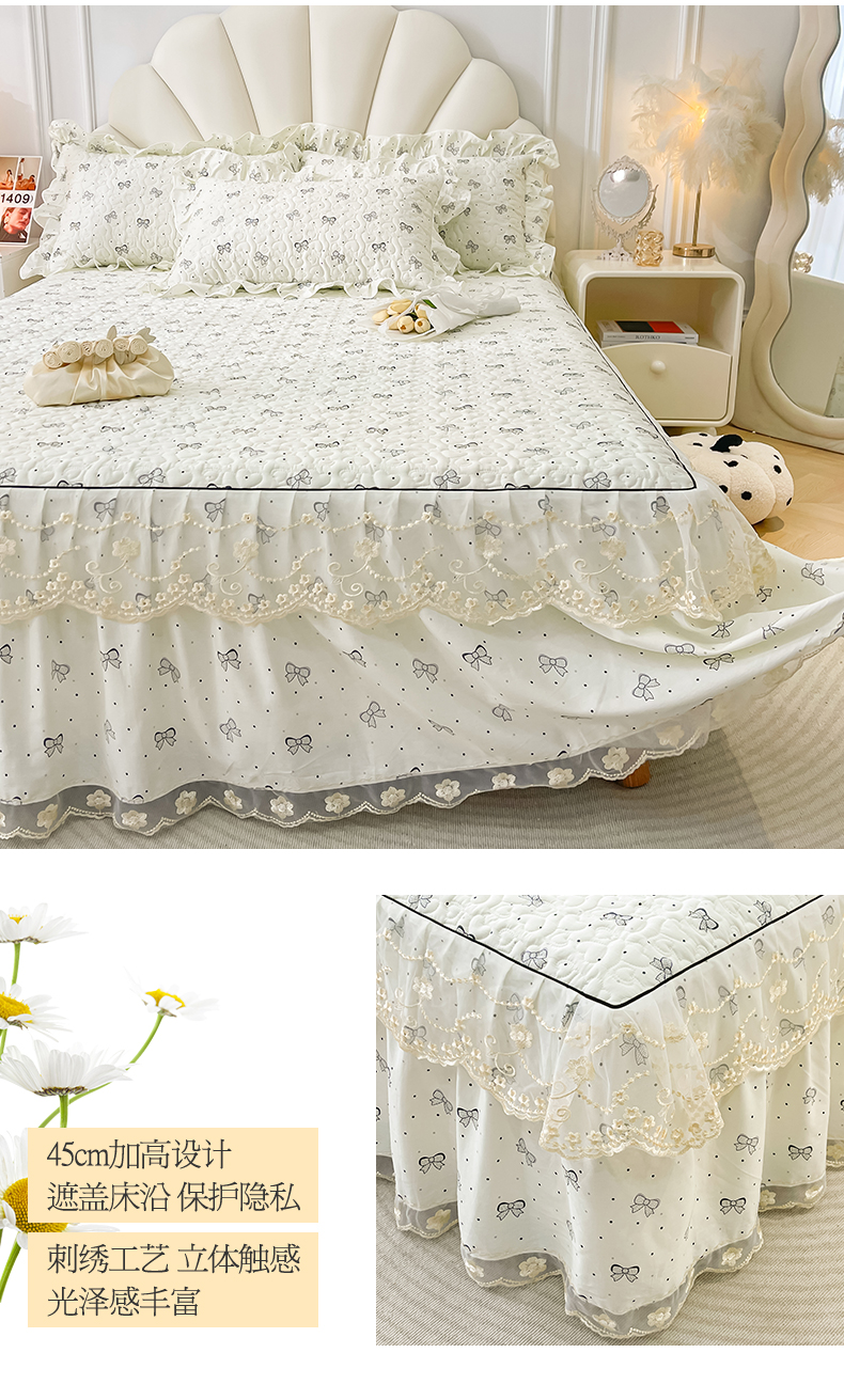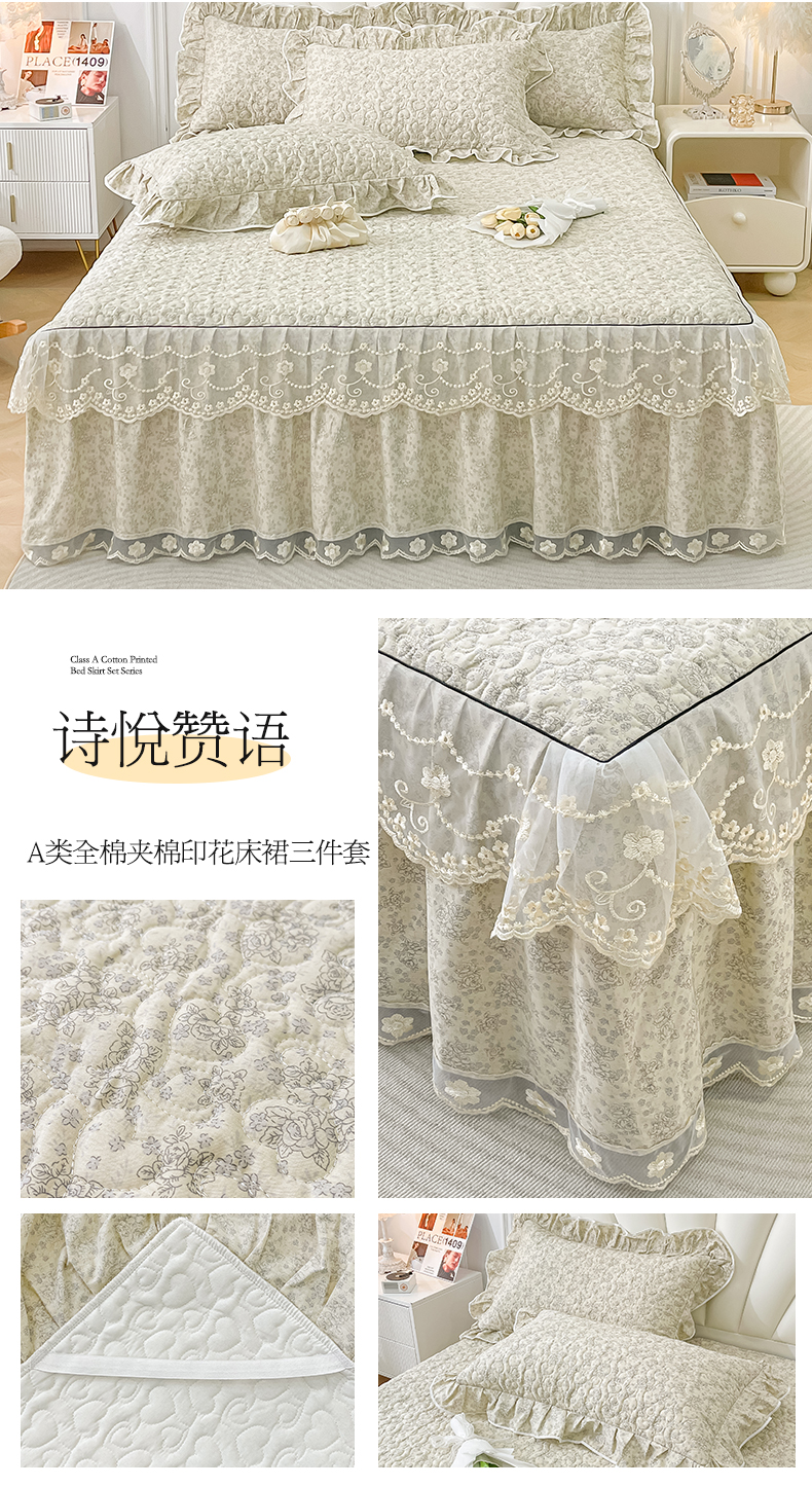 宜凡家纺 2024新款全棉夹棉印花床裙系列三件套 香榭巴黎