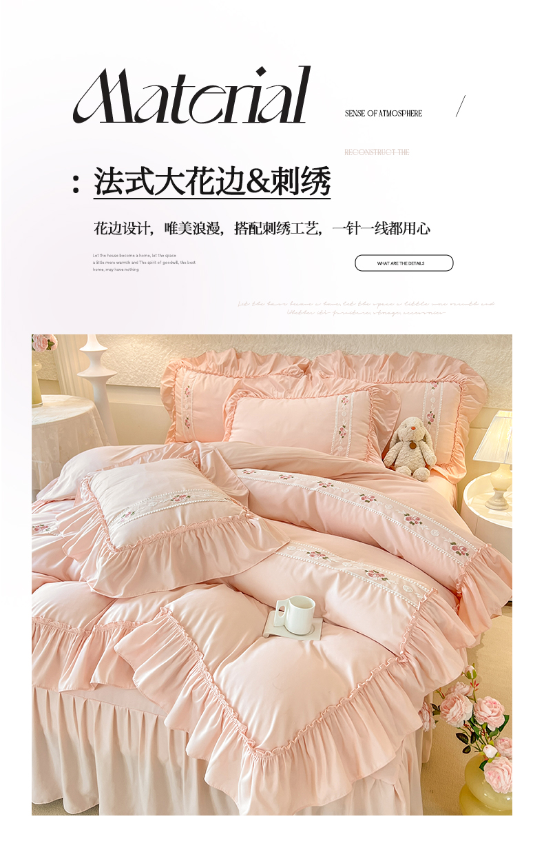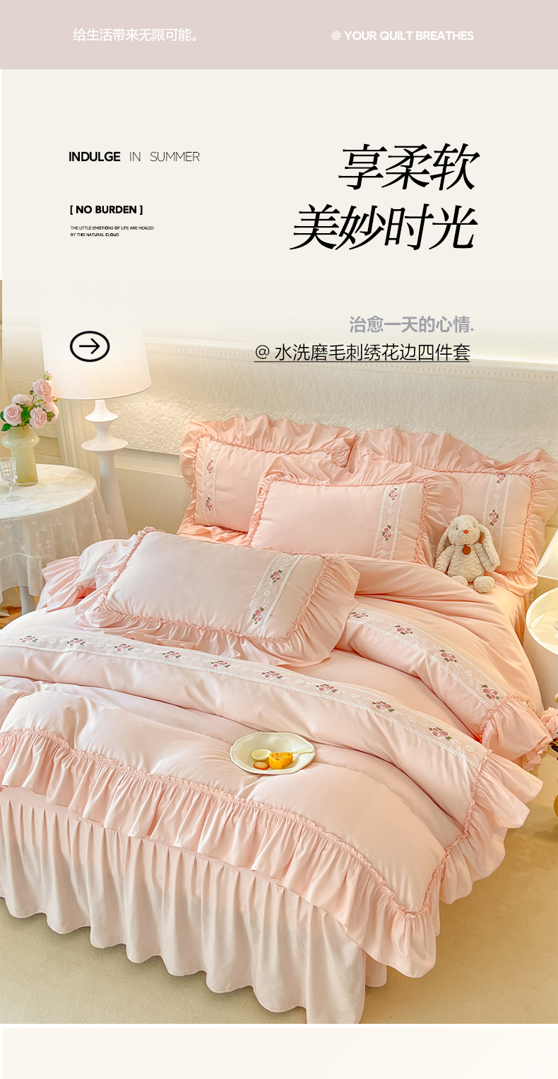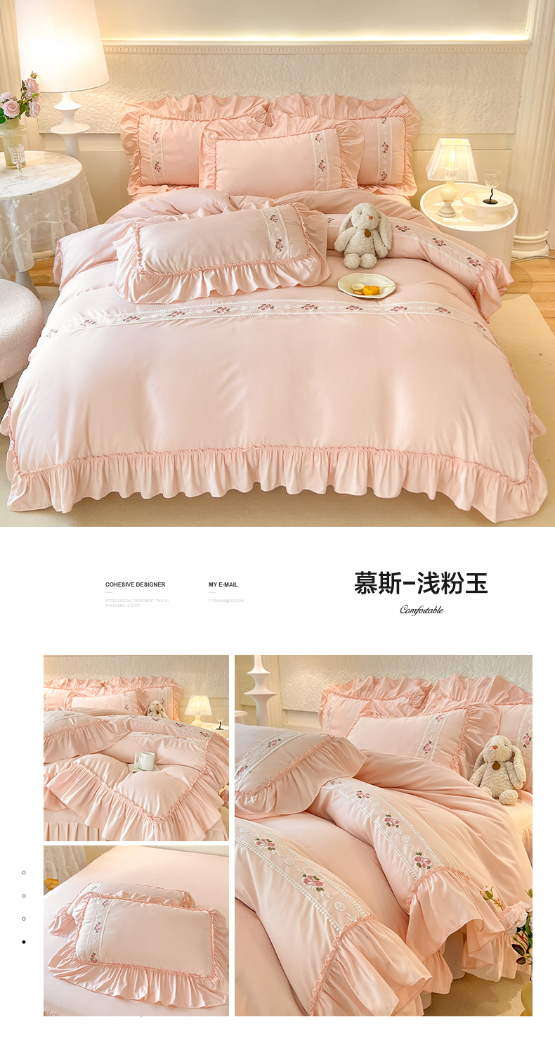 当前位置: 91家纺网 > 商品网购 > 床品套件 > 四件套 > 水洗棉四件套 > 逸尚阁2024新款水洗磨毛花边刺绣四件套-慕斯 慕斯-浅粉玉