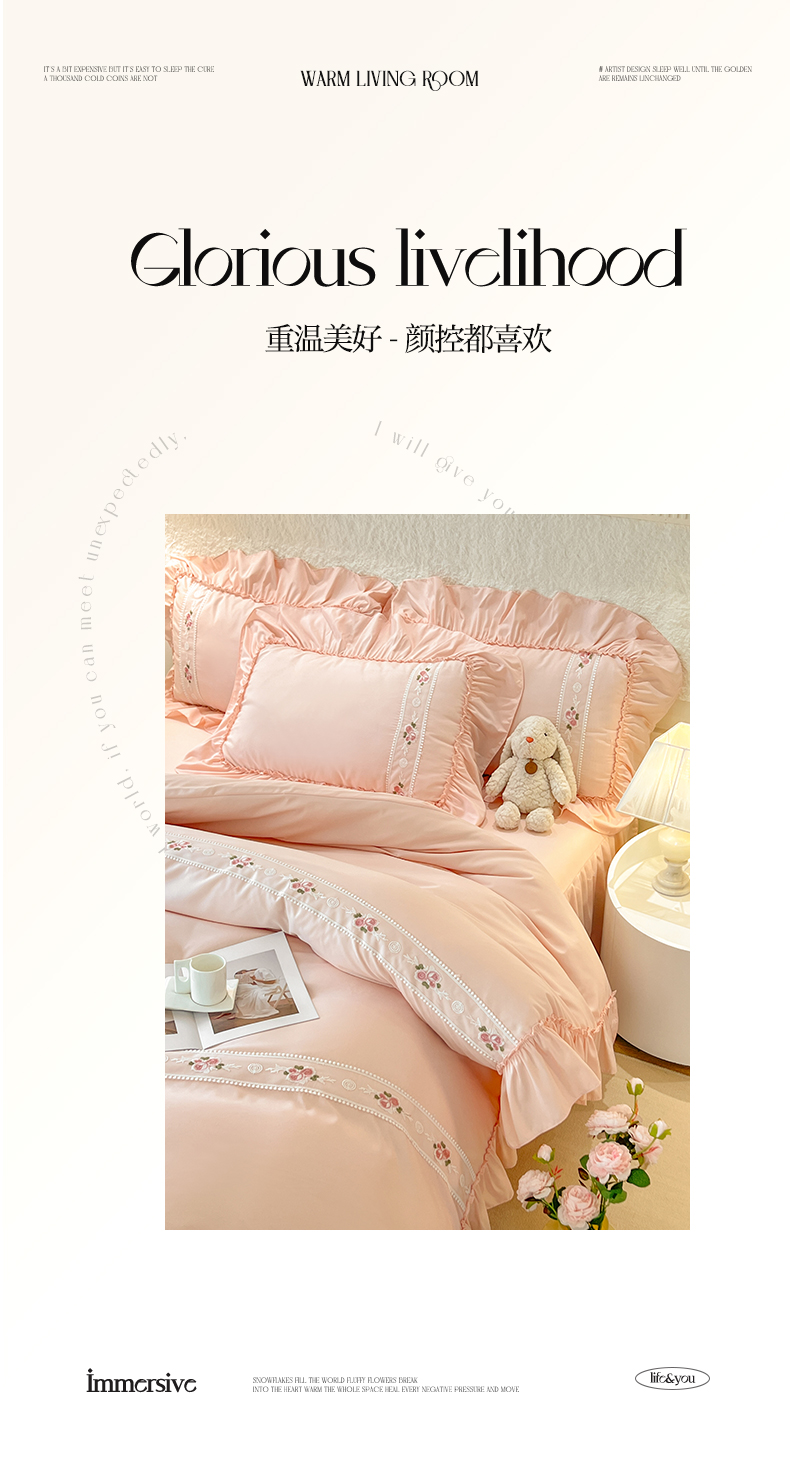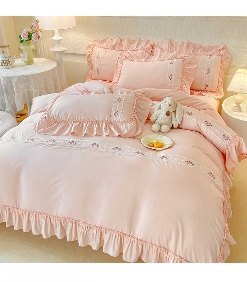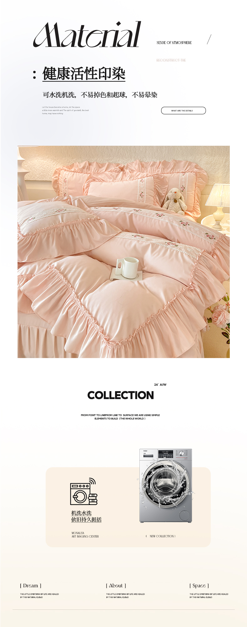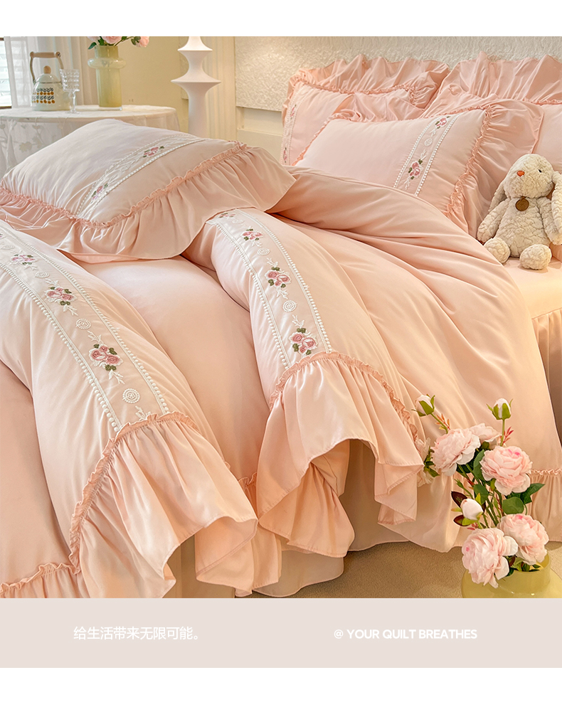 当前位置: 91家纺网 > 商品网购 > 床品套件 > 四件套 > 水洗棉四件套 > 逸尚阁2024新款水洗磨毛花边刺绣四件套-慕斯 慕斯-浅粉玉