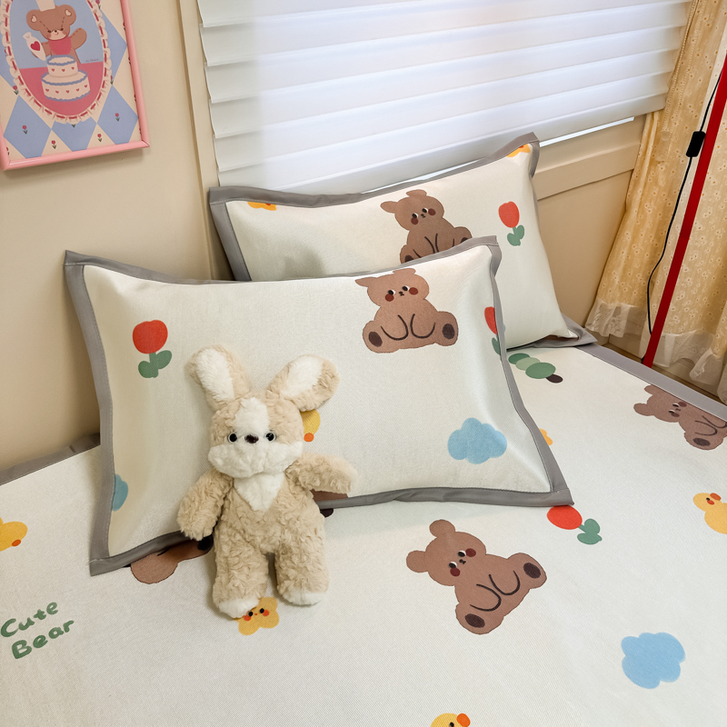 (总)慕尚家纺 2025新款全棉印花学生三件套套件,艾米熊,彩色爱心狗,铃兰花,美食派对,萌宠乐园,书生猫咪,桃心狗,汪可爱,旺旺,樱桃