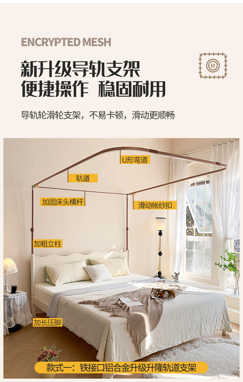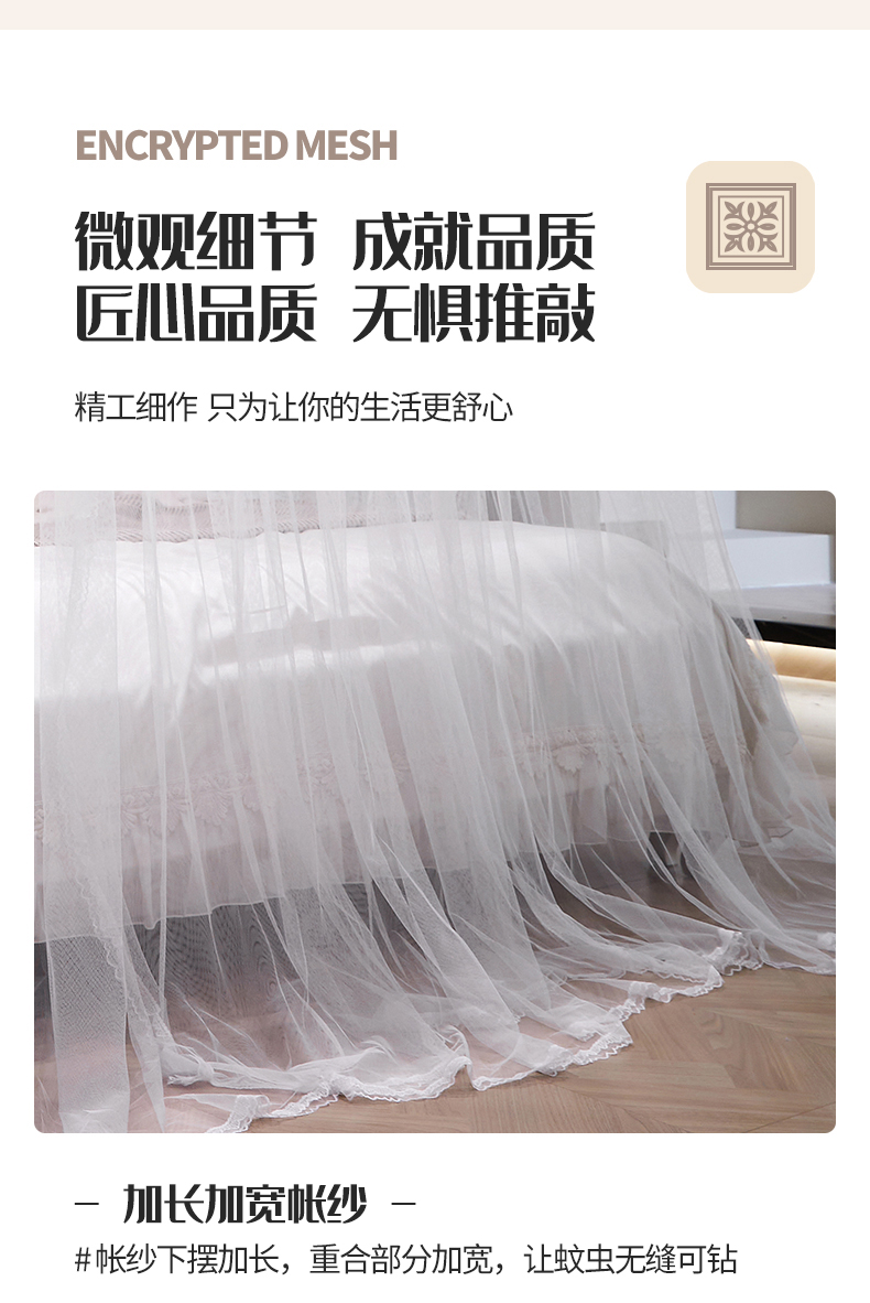 当前位置: 91家纺网 > 商品网购 > 床上用品 > 蚊帐 > 免安装蚊帐 > 夏彩 2024新款蕾丝加柔加密可升降升级轨道-88589 88589-象牙白