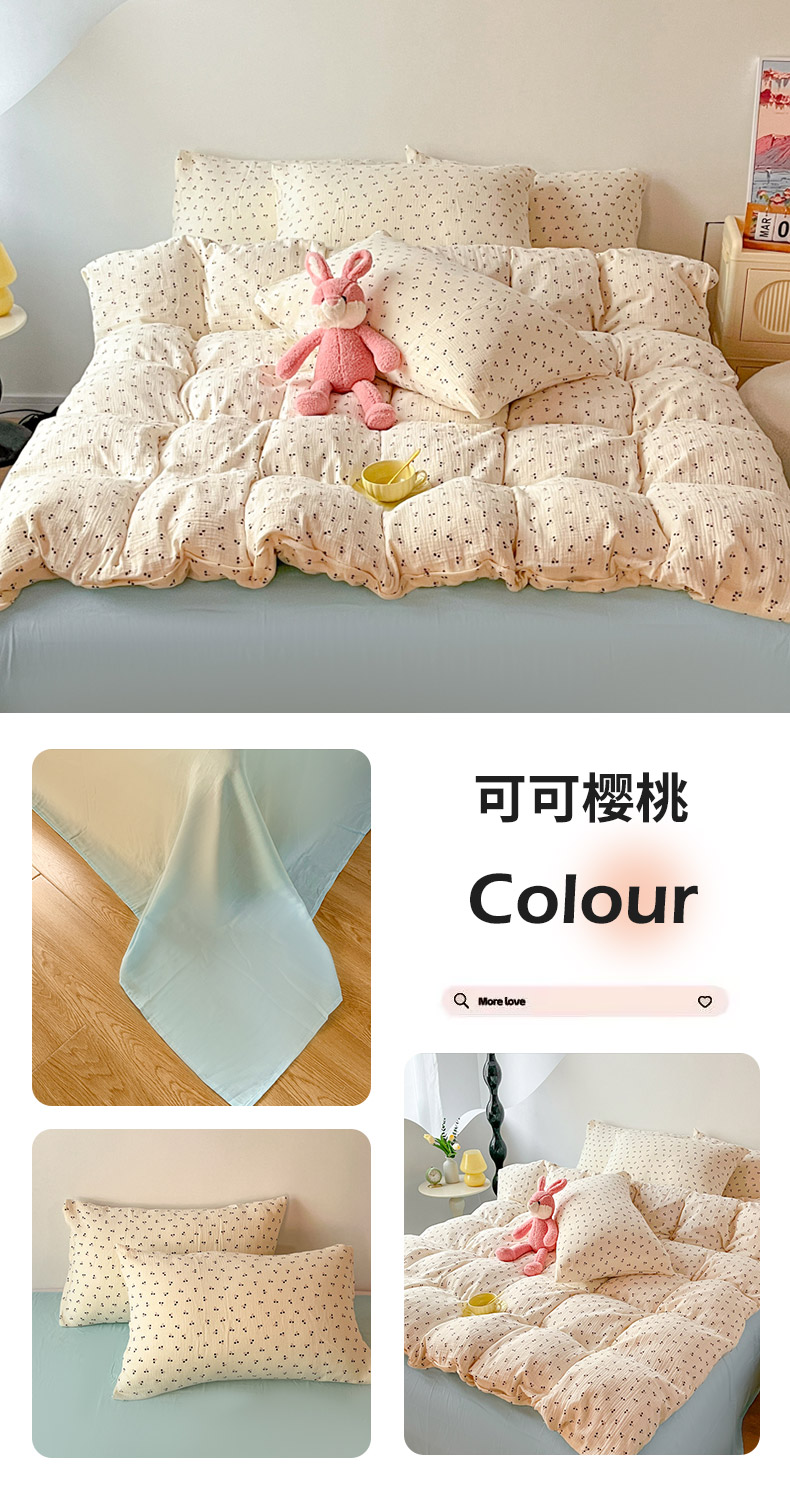 千朵 2024新款全棉双层纱四件套 可可樱桃