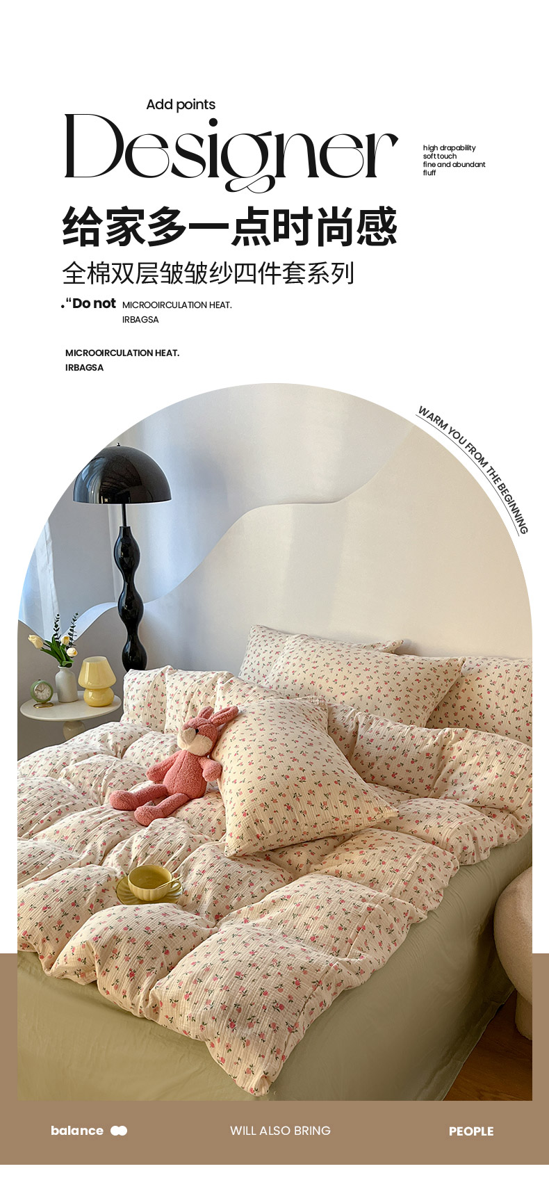商品名称:千朵 2024新款全棉双层纱四件套 可可樱桃