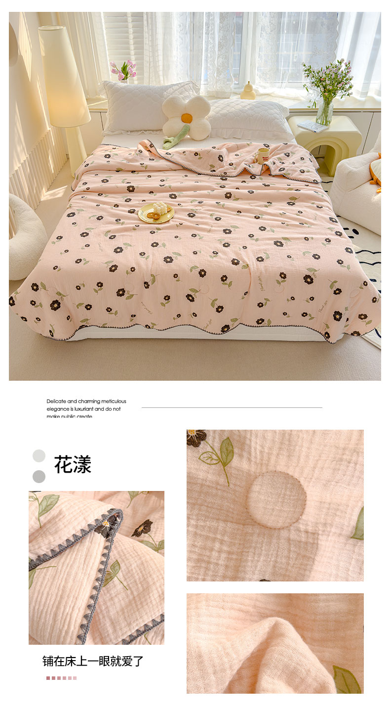 商品名称:芯恋 2025新款母婴级全棉皱皱纱双层纱夏被 花漾