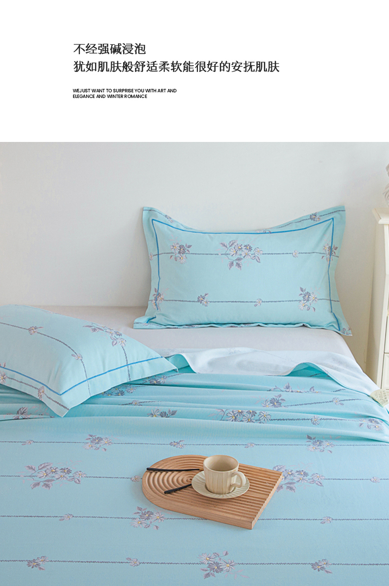 商品名称:金泰莱 2025新款原棉全棉老粗布凉席三件套全棉床单纯棉床单软凉席 悠然绽放-蓝