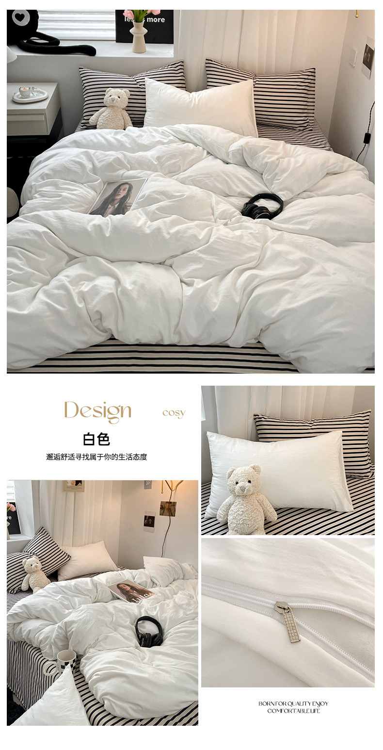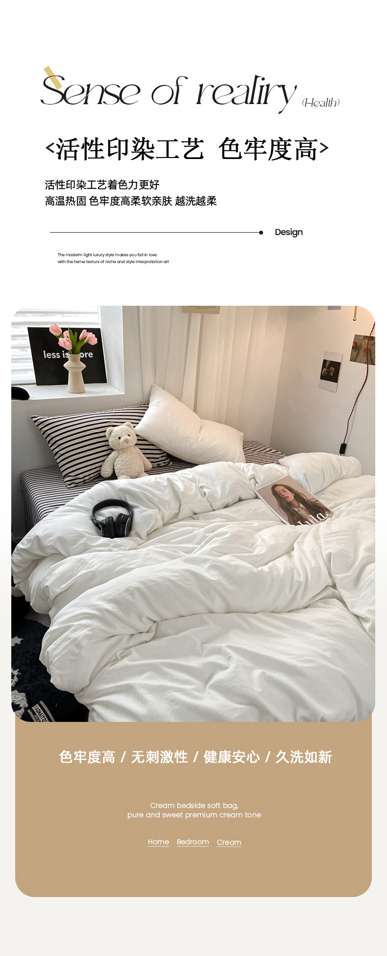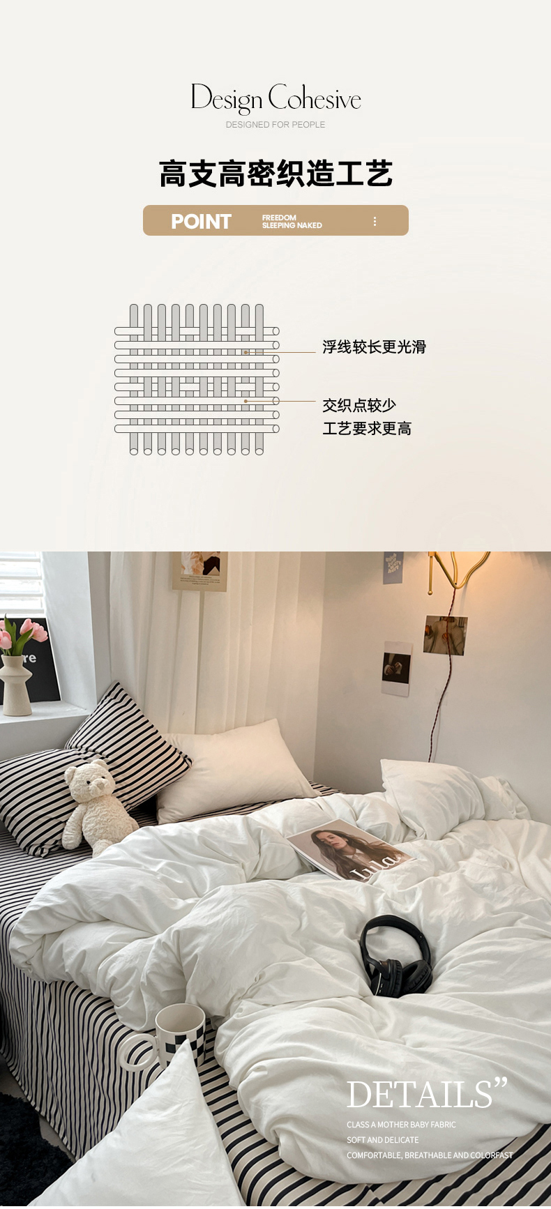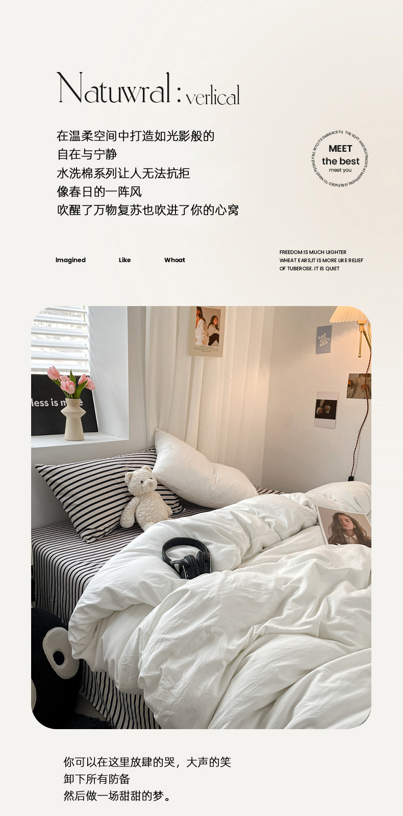 当前位置: 91家纺网 > 商品网购 > 床品套件 > 四件套 > 水洗棉四件套 > 耀达家居 2024新款ins 纯色双拼条纹水洗棉四件套 奶白